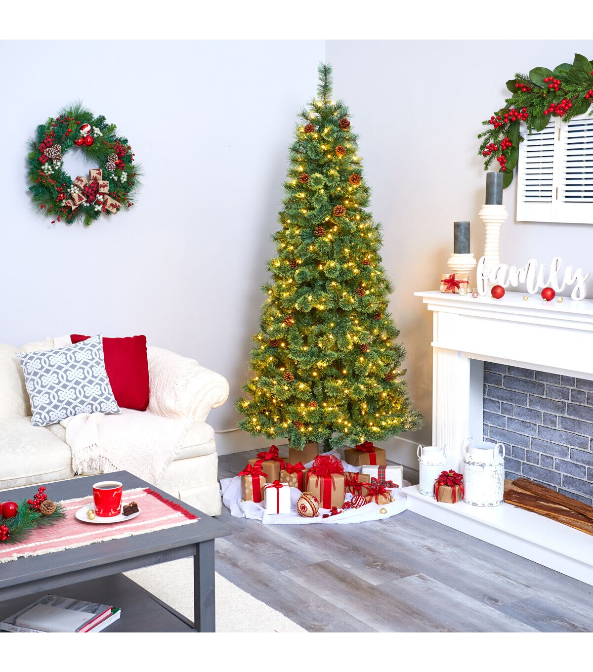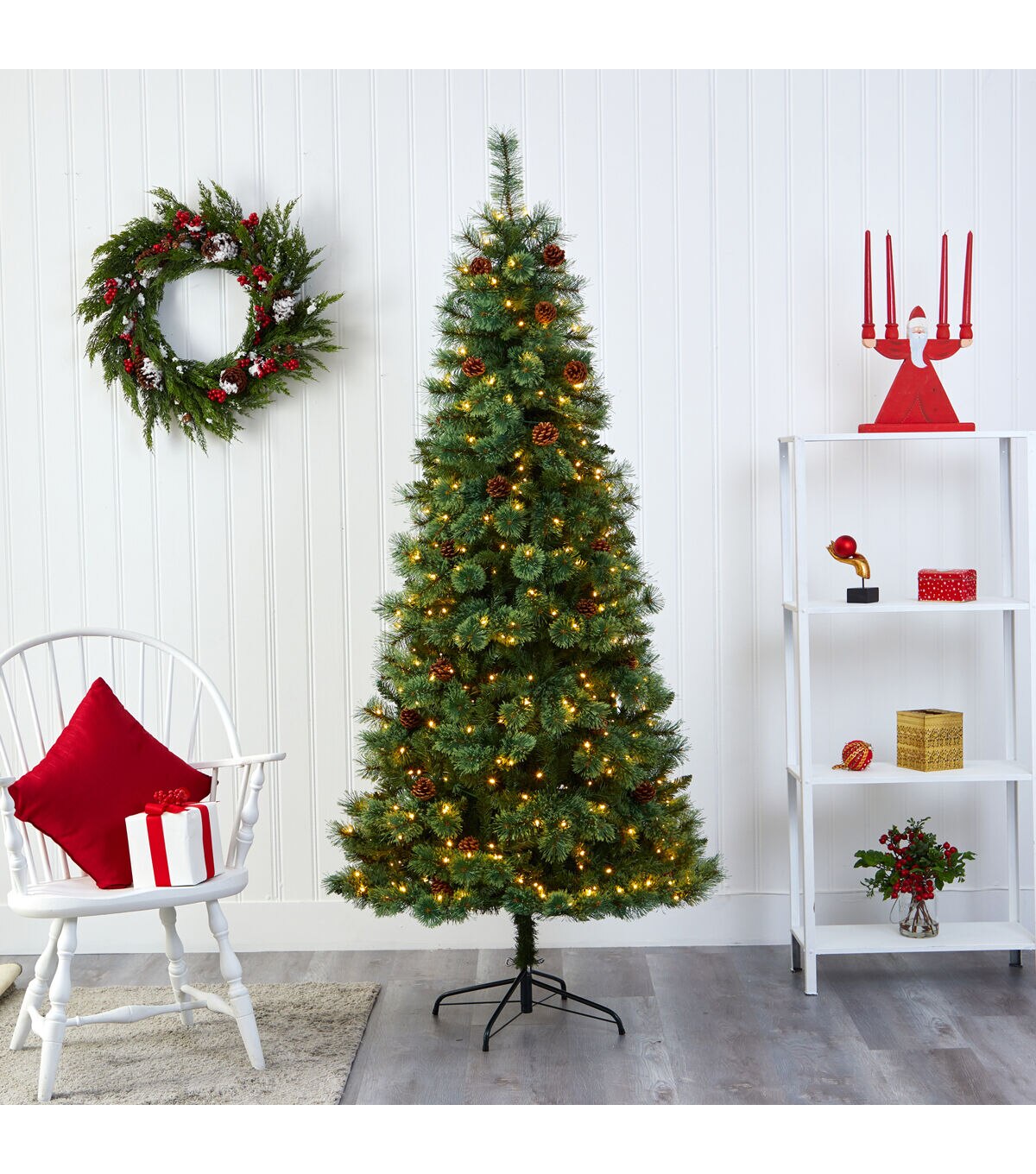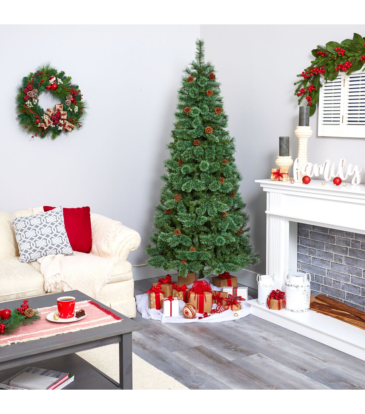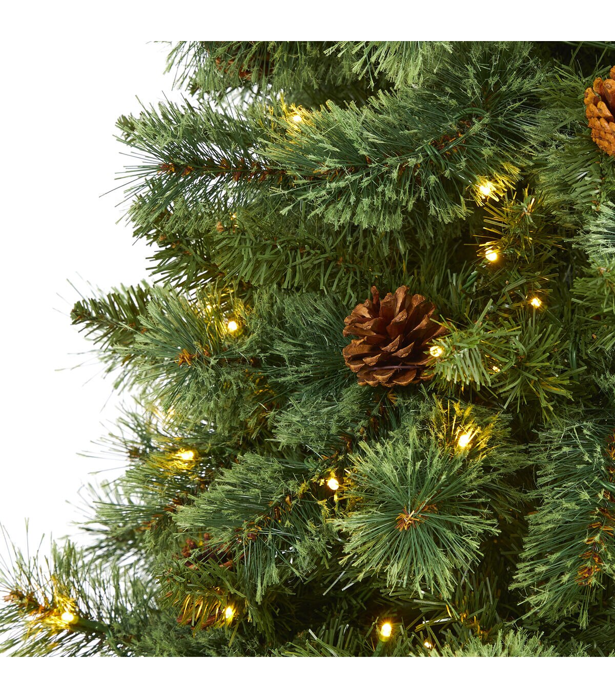 Create the ultimate holiday scene in your home or office with the help of this evergreen artificial Christmas tree; entirely maintenance-free, this realistic looking Christmas tree boasts a rich collection of pine foliage made up of 723 easy-to-bend branches to hang all of your favorite holiday ornaments and accented throughout with faux pinecones that look incredibly lifelike. Arriving pre-strung with 400 clear LED lights to eliminate tangles and stabilized on a metal stand, this handsome 7’ tall Christmas tree will not only make holiday decorating a breeze but ensure your home is always holiday-dressed for years to come. About Nearly Natural Inc. - For over 75 years, Nearly Natural Inc. has been providing conscientious consumers with beautiful alternatives to natural decorations. Employing and advised by naturalists who understand the live plant world, Nearly Natural is able to recreate the most realistic-looking decorative items for homes, offices, and businesses. Driven by a true commitment to customer service, attention to detail, and natural philosophy, Nearly Natural strives to bring customers the most beautiful, unique, and striking faux plants and floral on the market.