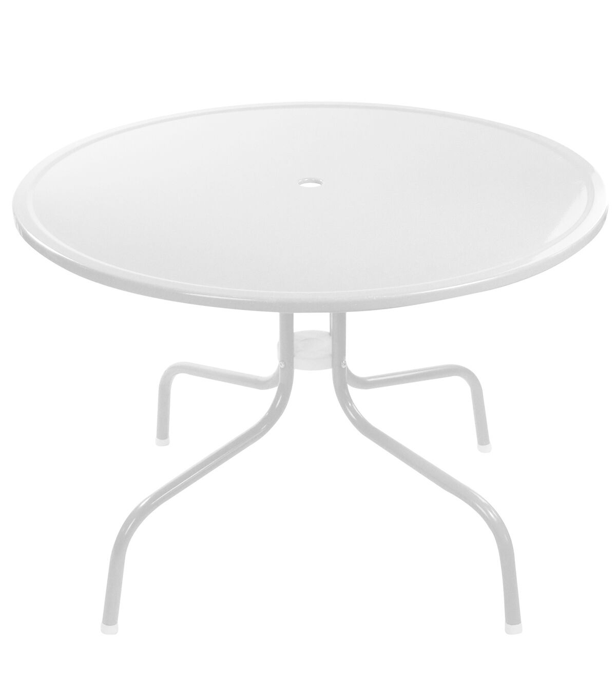 Pairs beautifully with our matching vintage style metal tulip chairs and gliders. Its convenient 39.25-inch size fits comfortably on decks and patios and offers room for four chairs which are sold separately. The long lasting enamel paint and finish allow for many years of great usage without the worry of the table rusting or peeling. Adds the perfect pop of your color to your yard. Features: Outdoor retro metal tulip dining table Color: white Long-lasting enamel paint Powder-coated finish Features four legs with white plastic caps and a round top Comes in a 5-piece easy assembly All weather resistant For indoor or outdoor use Seats up to 4 people (chairs not included) Umbrella hole fits most standard poles up to 1.5" wide Dimensions: 26" high x 39.25" diameter Material(s): steel/plastic