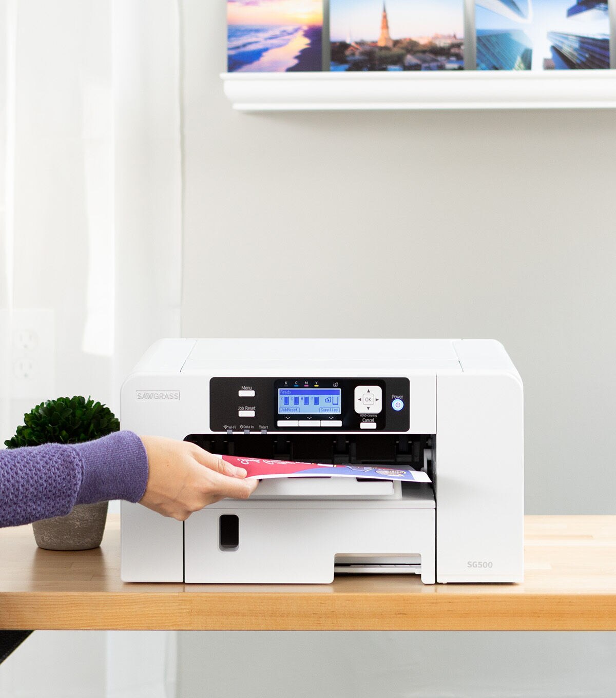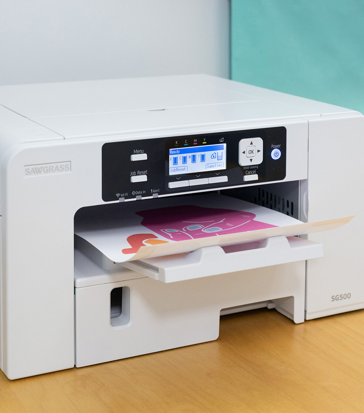 - The SG500 prints in RGB color mode using CMYK inks specifically created for our Sawgrass printers.