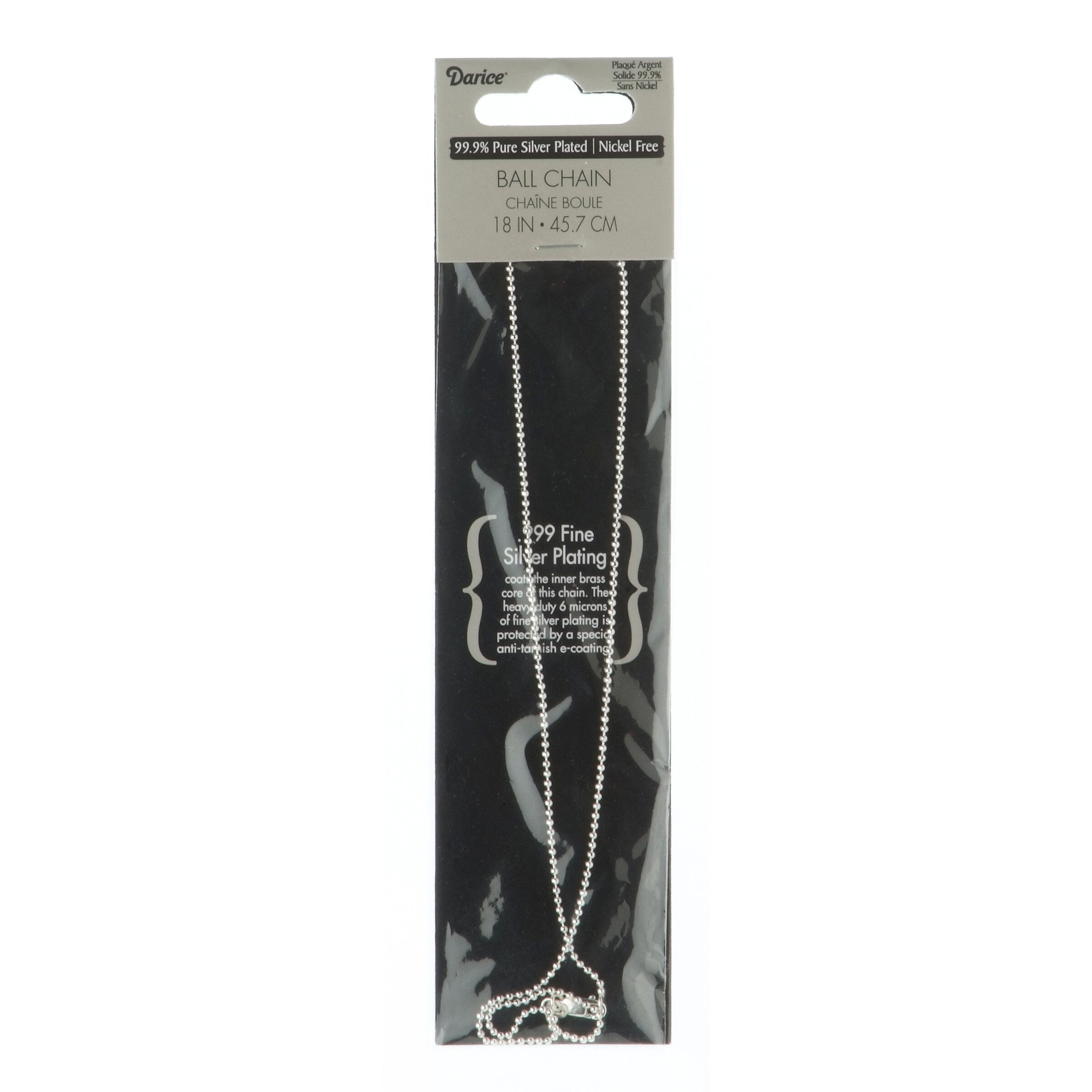 Simple ball chain necklace makes the perfect base for a unique finished necklace created by you. Add beads, chains, charms and more to decorate. Sterling silver plated. 18 inches long. Nickel free. 1.5mm size chain thickness.