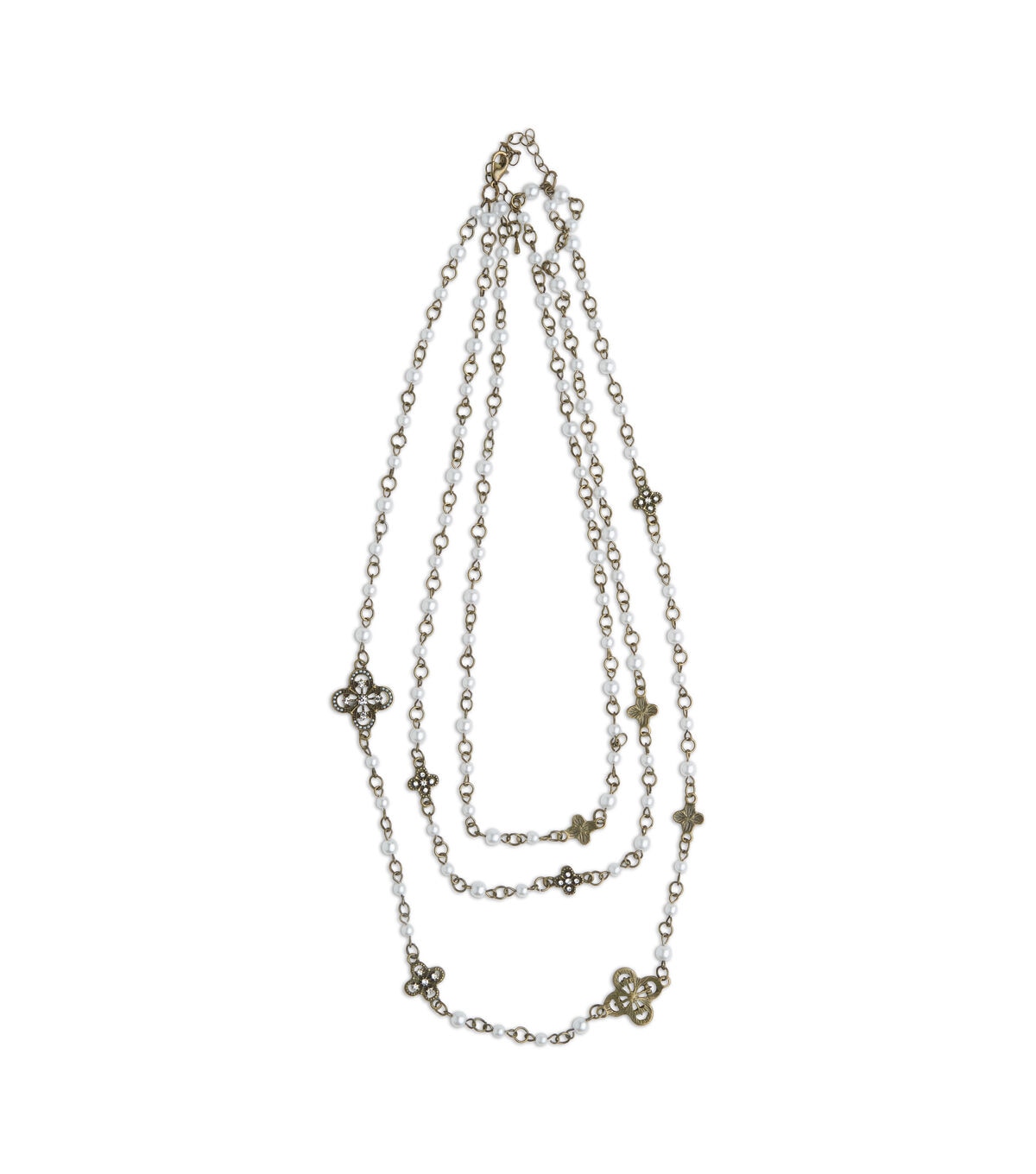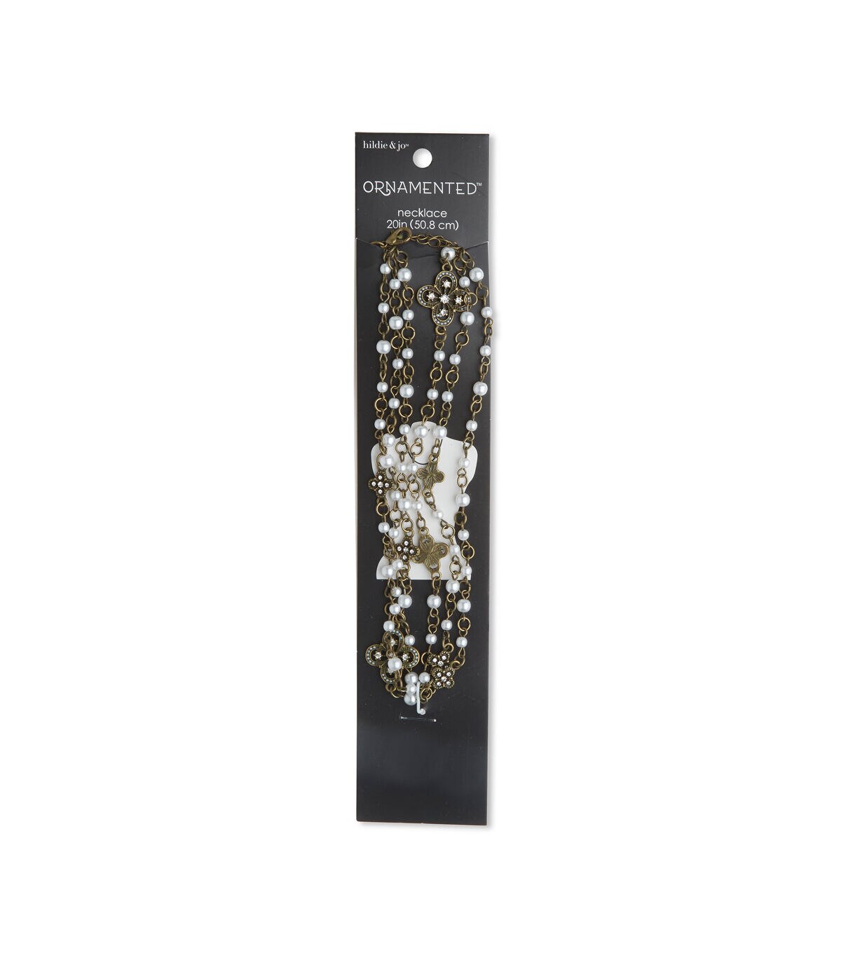 Pair this attractive hildie & jo Antiquist Flower Antique Gold Necklace-Pearls with your dresses to create a lovely look. This 20-inch long necklace is embellished with round pearls and flowers, which are spaced throughout the necklace. You can wear it on its own or add charms or pendants to amplify its look.