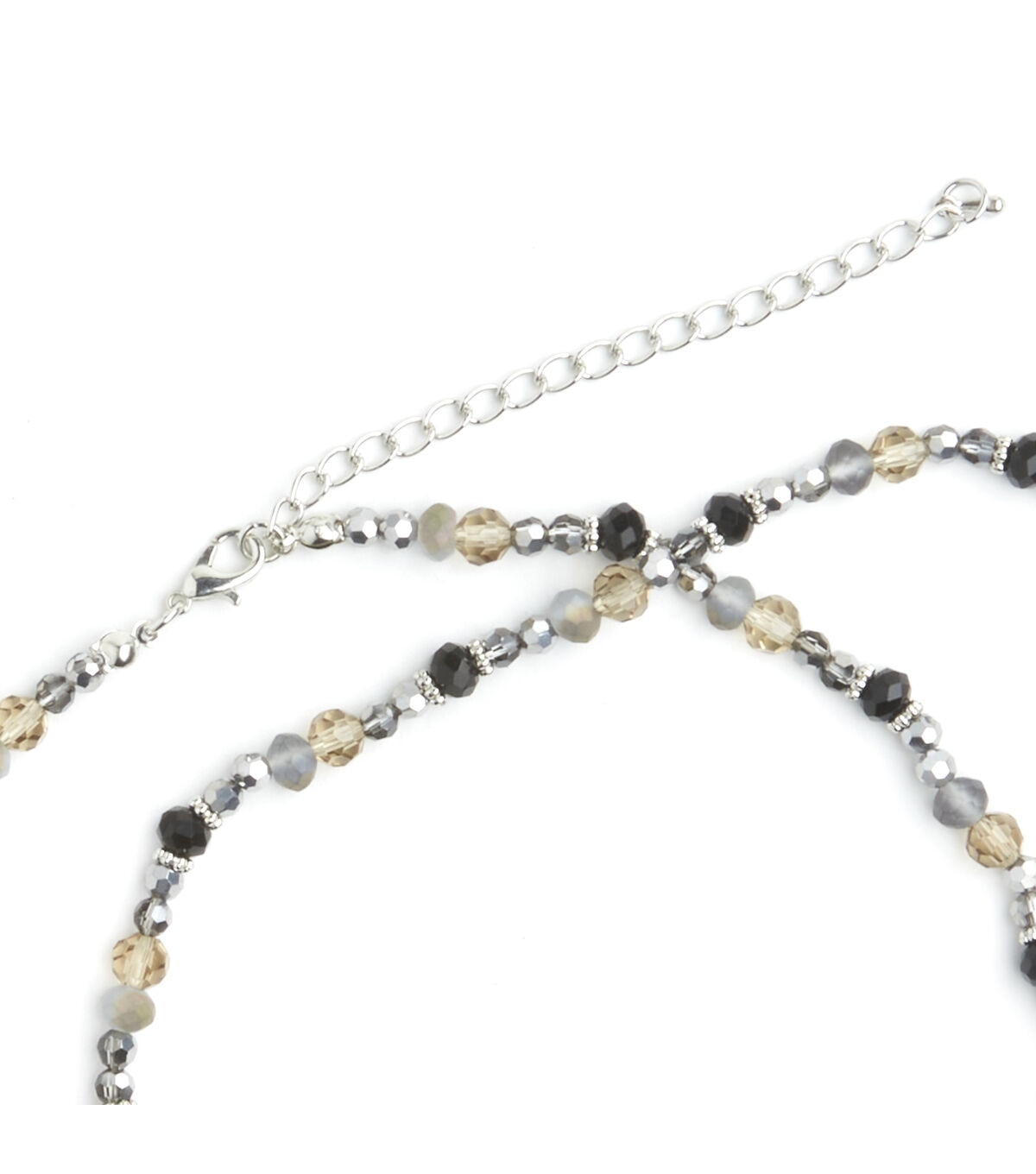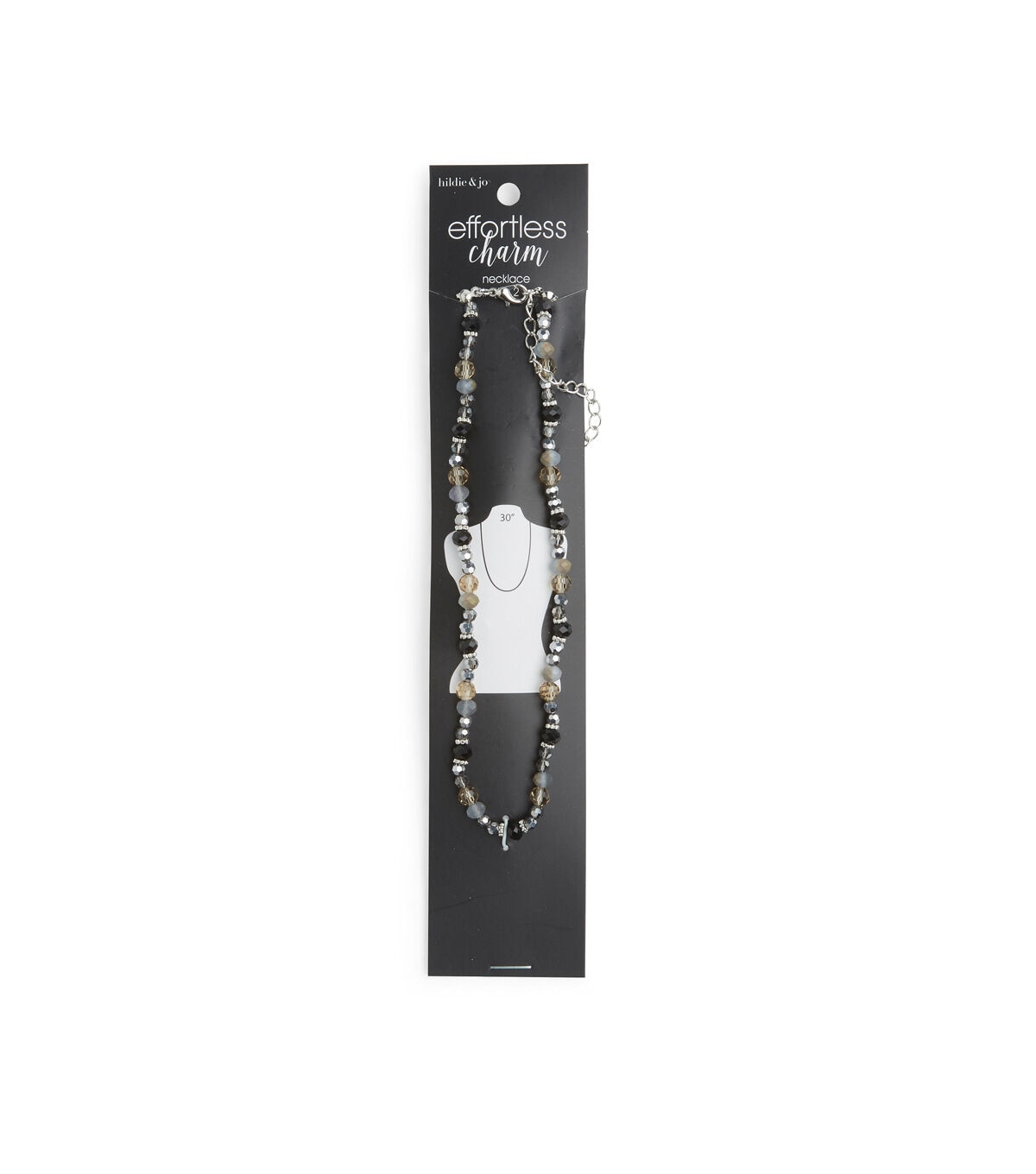 Prettify your look by accessorizing with this hildie & jo Effortless Charm Silver Necklace-Gray & Tan Beads. Made of silver, this 30-inch necklace has multiple shades of tan, gray, black and brown beads in assorted sizes with silver spacers in between some of the beads. You can attach charms and pendants to create a minimalist and elegant look.