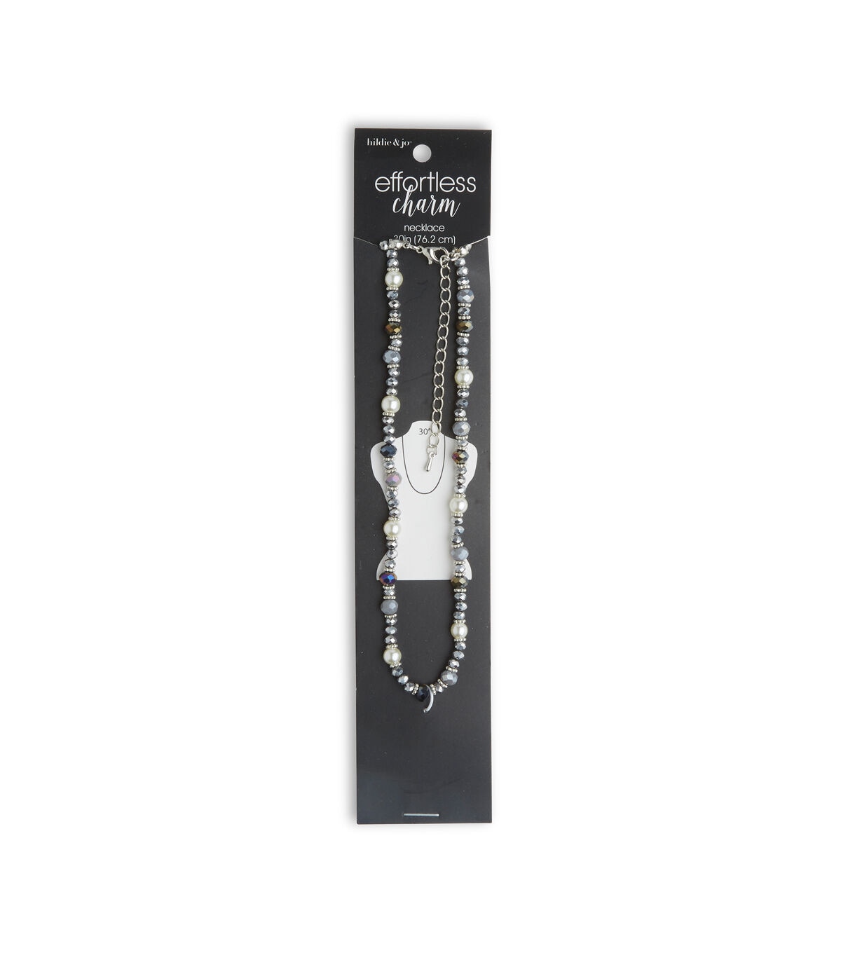 Add a pop of intrigue to your appeal by sporting this beautiful hildie & jo Effortless Charm Silver Necklace-Gray Stones. Visually appealing, this 30-inch necklace is made using gray stones with silver spacer beads. The beads feature in a variety of shapes and sizes and has a lobster clasp for easy attachment. You can team it with pretty charms and pendants to create an artistic flair.