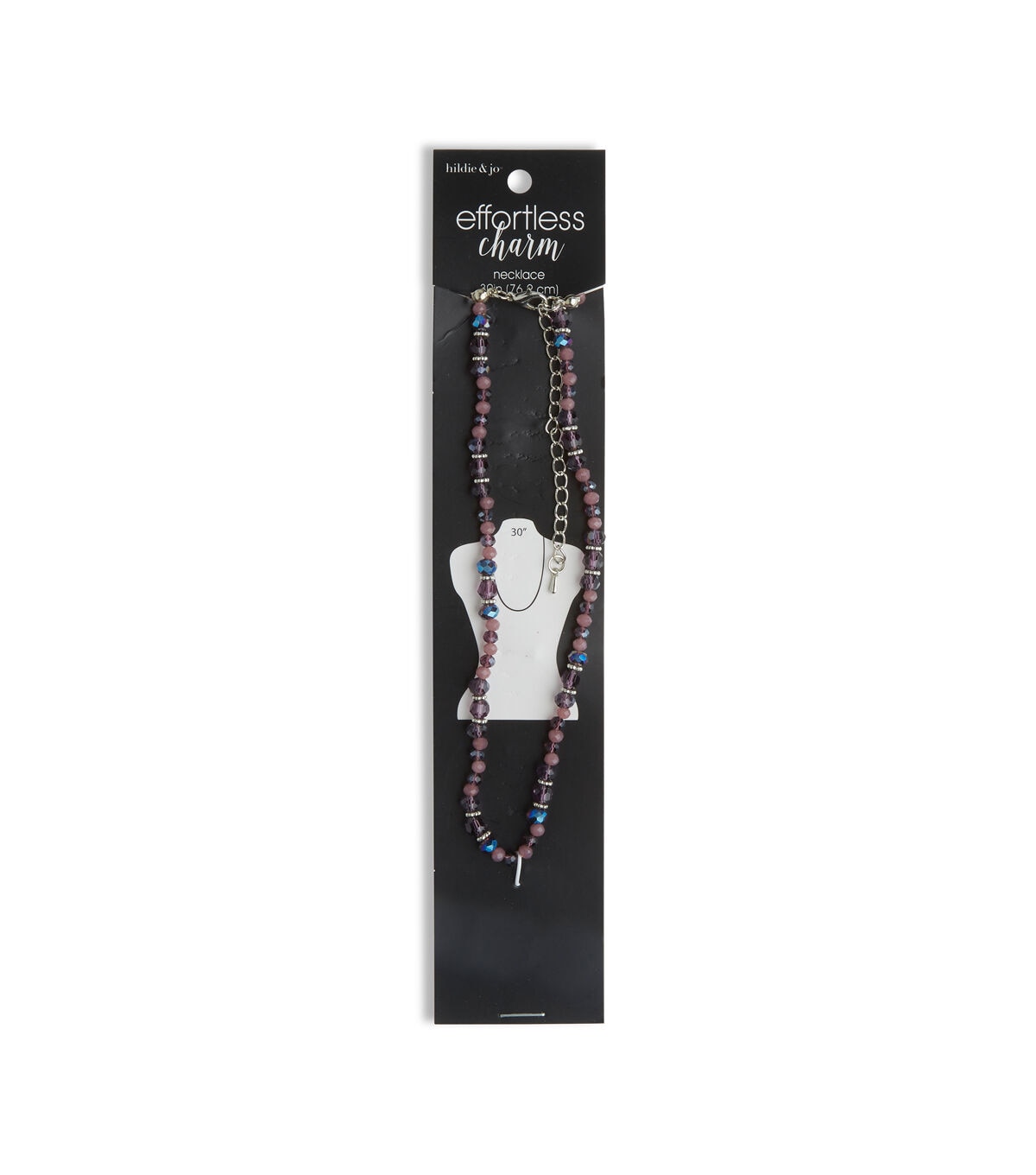 Prettify your look by accessorizing with this hildie & jo Effortless Charm Silver Necklace-Purple Beads. Made of silver, this 30-inch necklace has multiple shades of purple beads in assorted sizes with silver spacers in between some of the beads. You can attach charms and pendants to create a minimalist and elegant look.