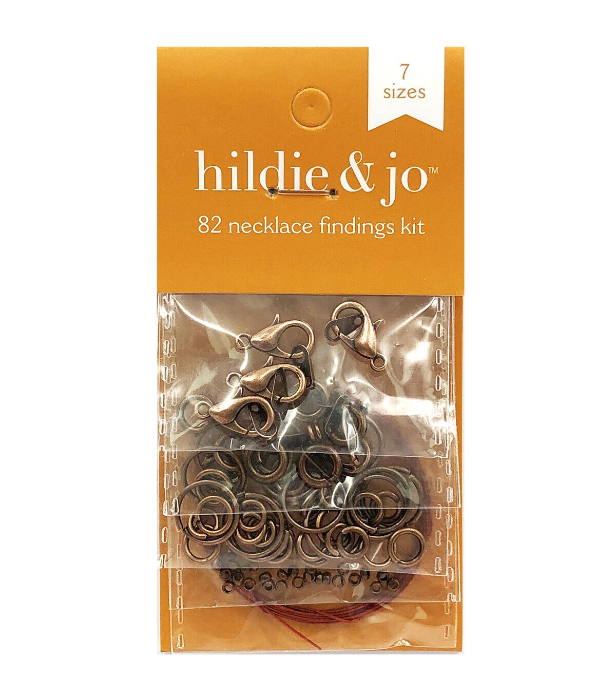 Put together your own jewelry designs using the hildie & jo Necklace Findings Kit-Copper. You can use the essentials in this kit to design or repair your jewelry creations. They can be used to make bracelets, earrings, anklets, necklaces and more. This necklace findings kit includes 82 pieces.