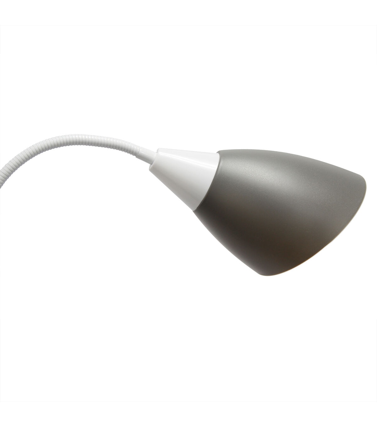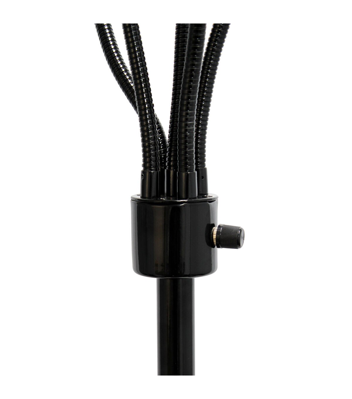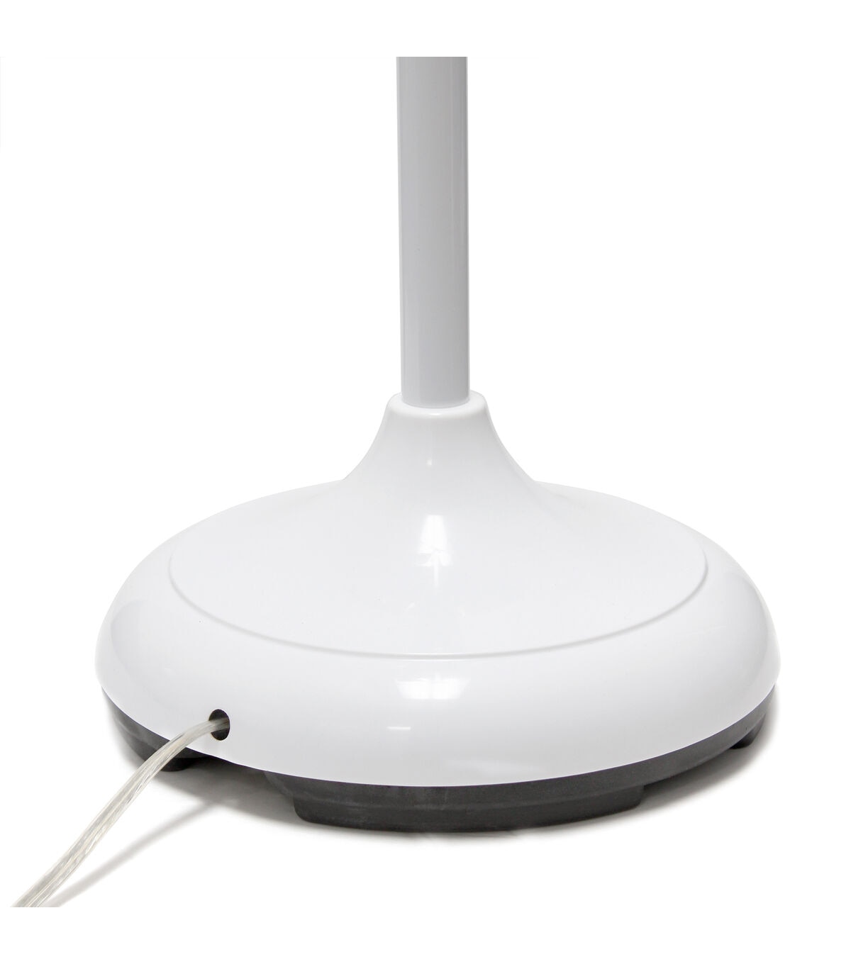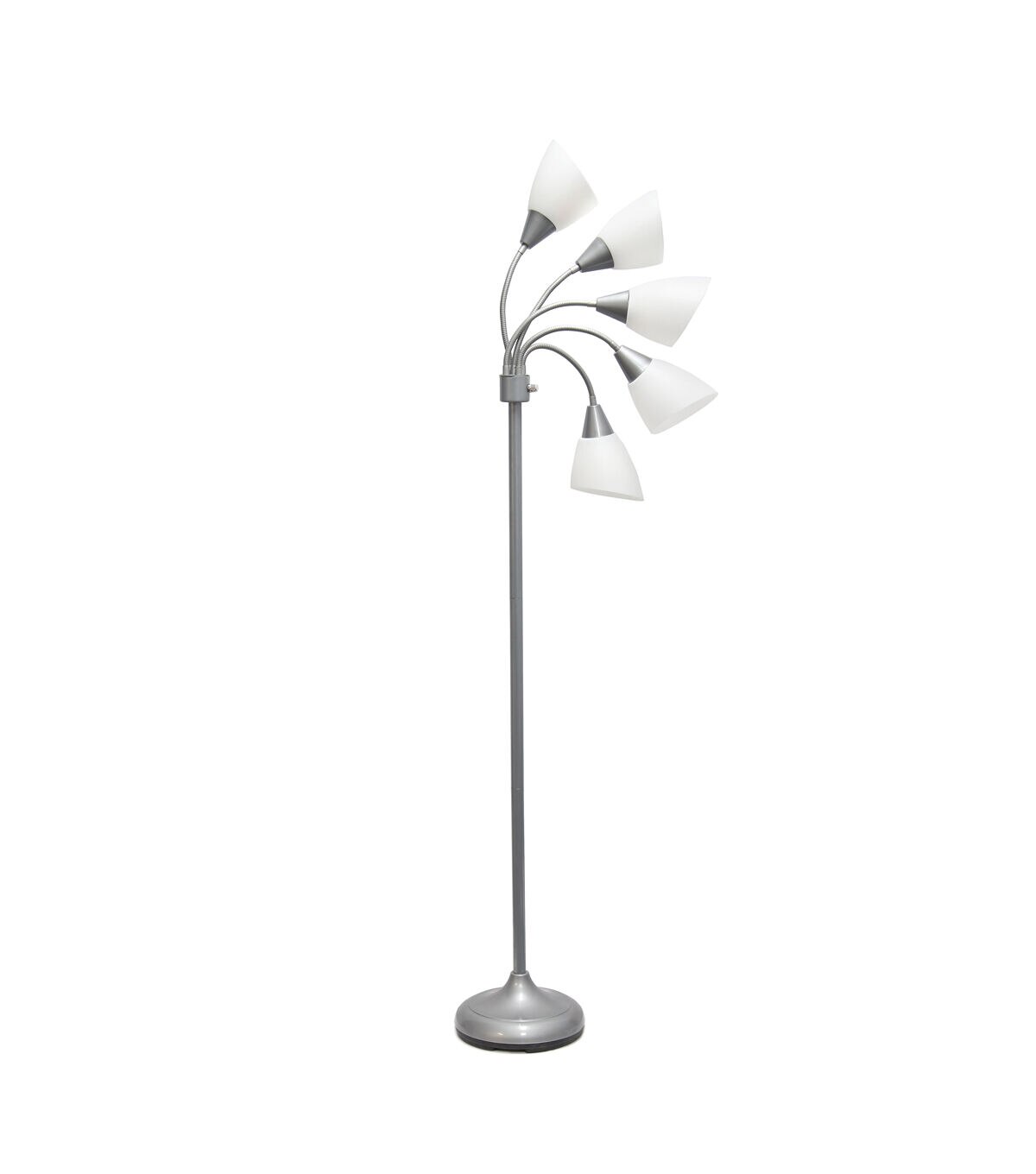 What a fun and trendy floor lamp this is! With a tall sturdy base below 5 flexible goosenecks extending to a plastic sloping shade, this metal lamp is ideal for environments requiring different directions of light as needed. The extensions are easy to maneuver to provide light up, down, sideways, etc. without having to move your lamp from its location. Check out all of the available base finish/shade color options available to suit your needs.