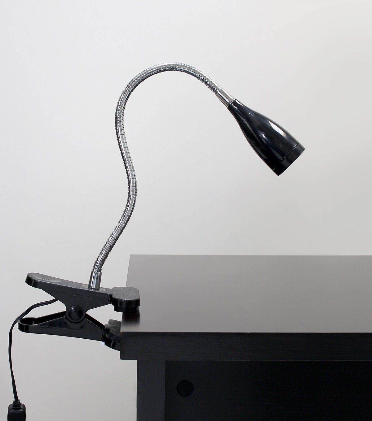 Style and functionality meet with this LED clip lamp. Comes equipped with durable clip. The flexible chrome gooseneck allows you to point the light exactly where you need it. ON/OFF switch is located on the cord for convenience. Perfect for office, kids room, or college dorm!