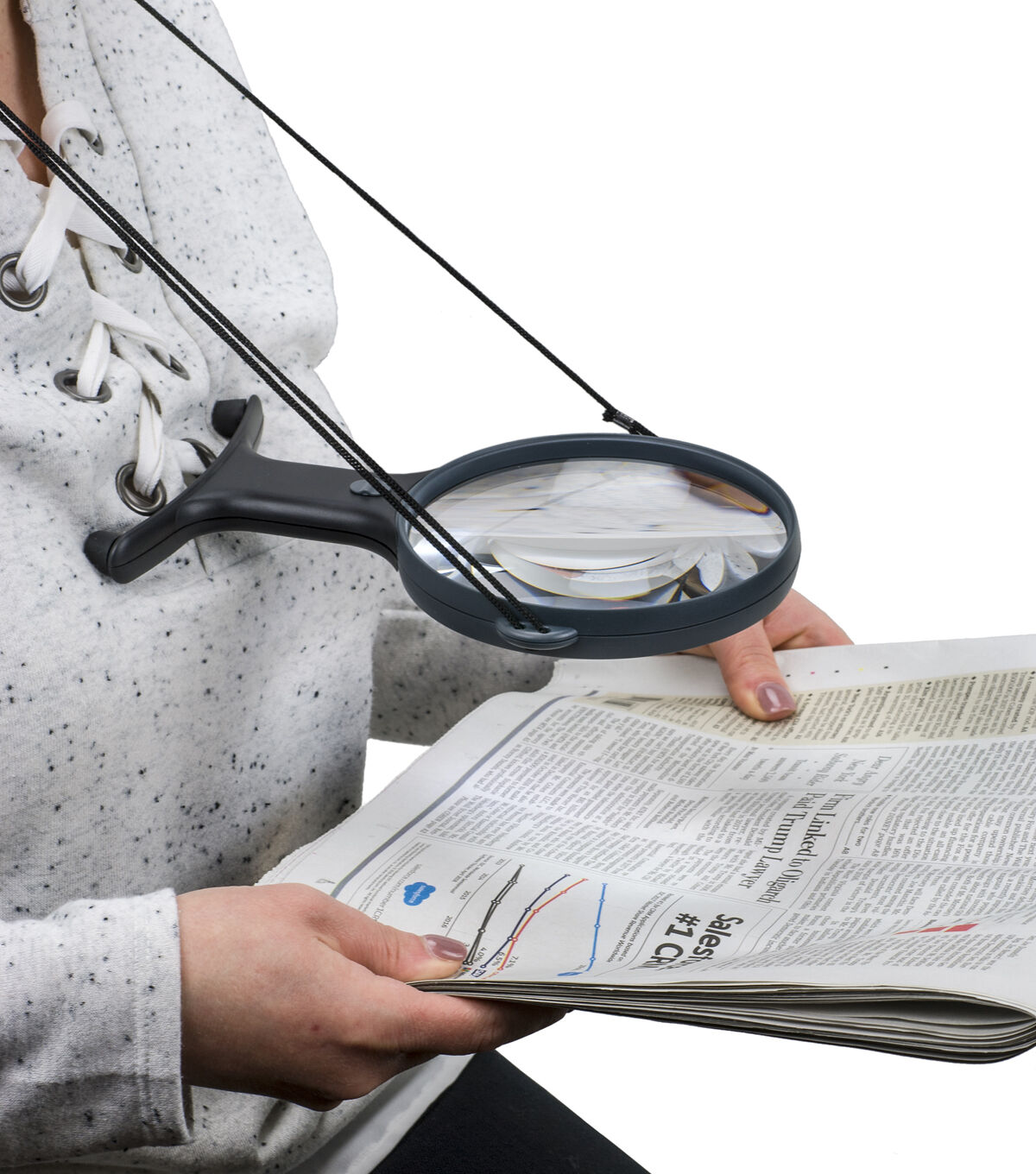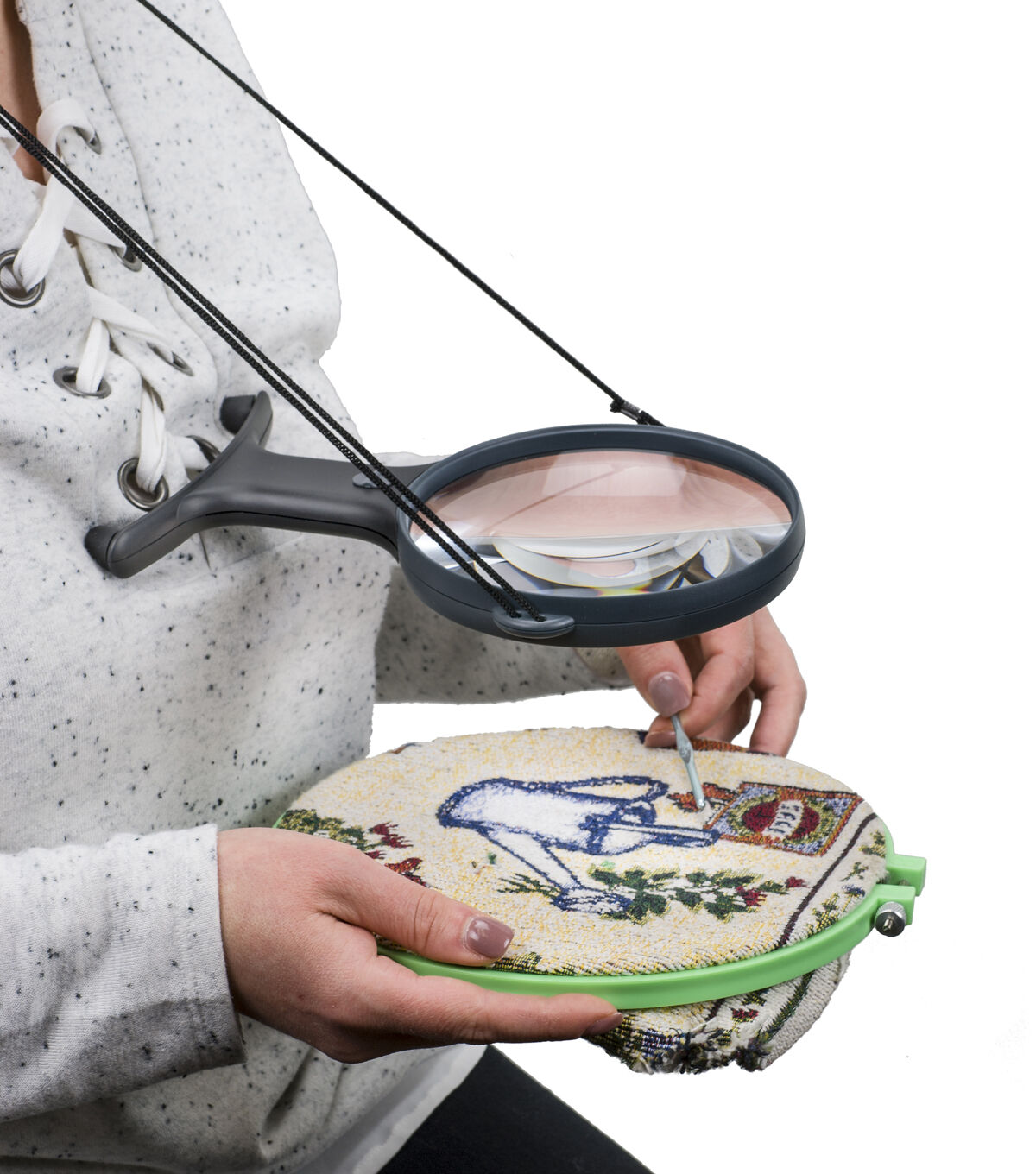 - Hands-Free Magnifier with 2x Power Magnification | Lens Diameter: 5.0 inches