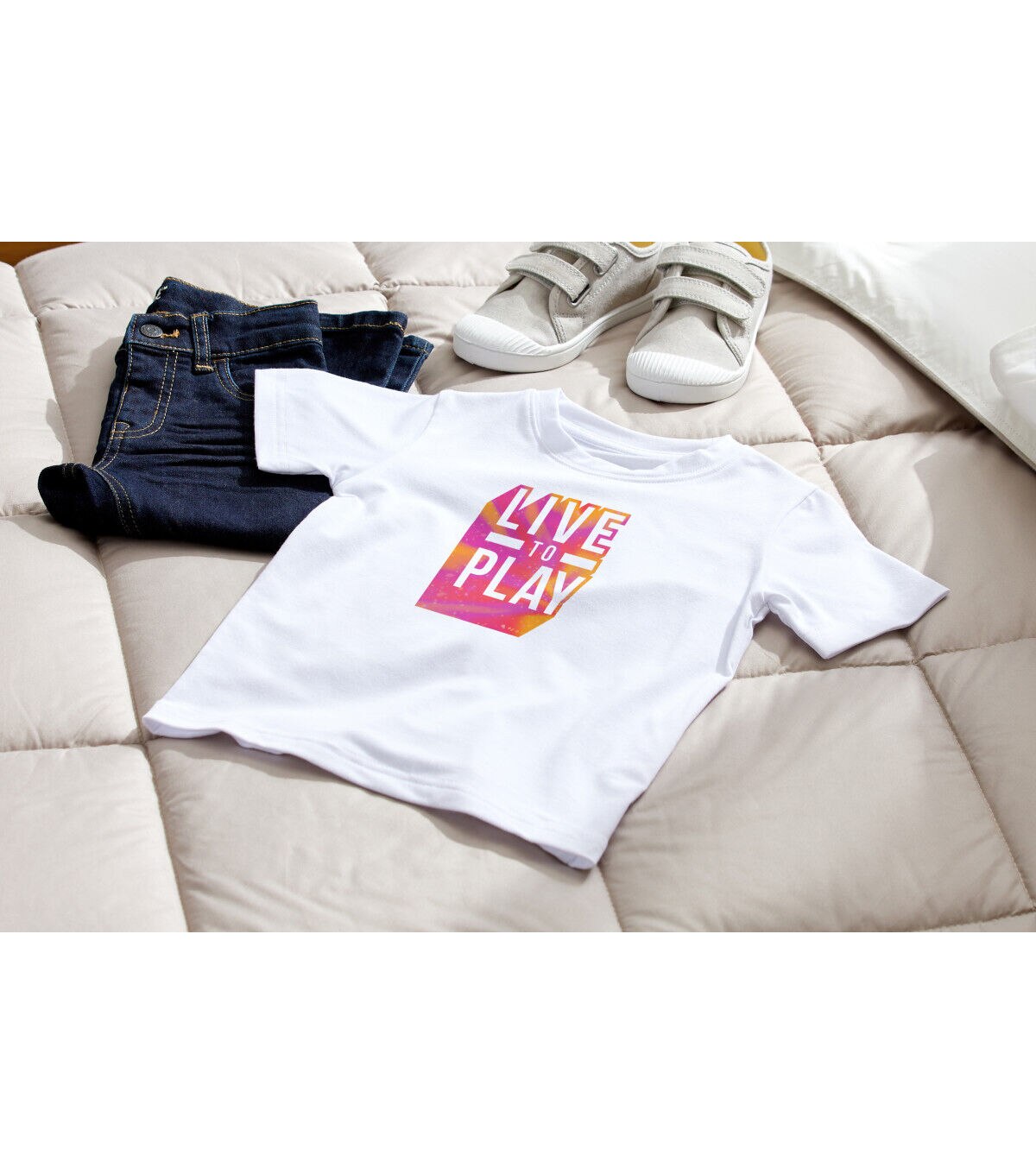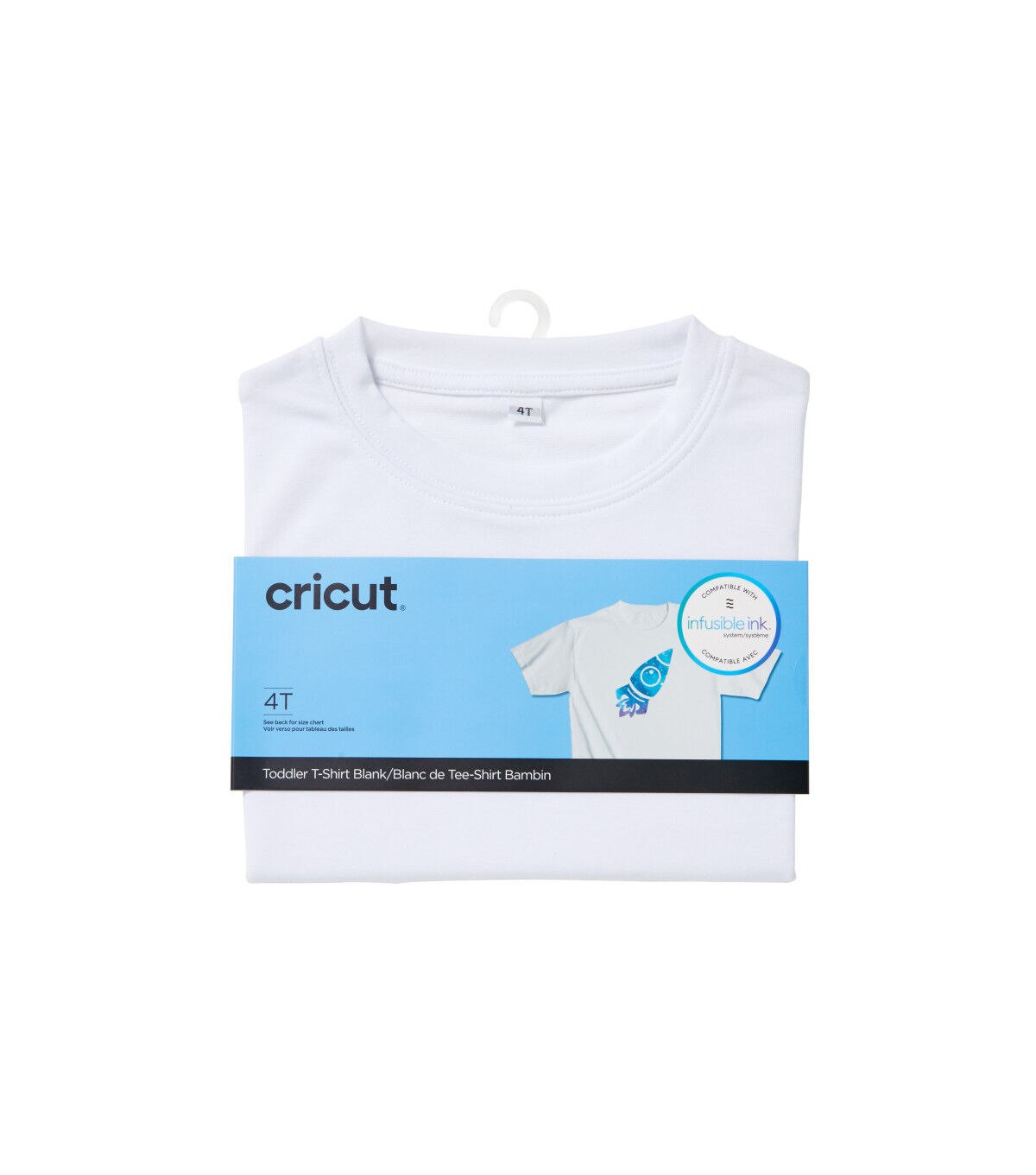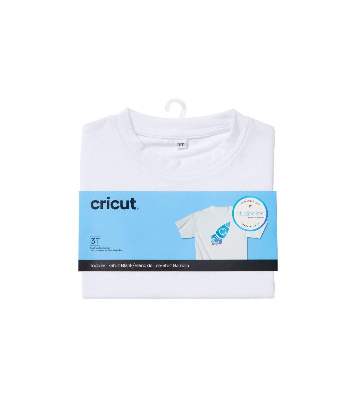 Optimized for Infusible Ink transfers. Let this soft, white toddler crew-neck T-shirt be the blank canvas that inspires your next creative project. Use this compatible Infusible Ink™ blank as your base for vibrant, pro-quality heat transfers that last a lifetime! Cricut Infusible Ink blanks are optimized for superior results.* Unlike iron-on heat transfers or heat-transfer vinyl that adheres to your project's surface, Infusible Ink design s become one with your compatible material, resulting in rich, full-color transfers without edges or seams. Get a smooth, durable, premium finish that's always flake-proof, peel-proof, and wash-proof. Personalize and customize any compatible Infusible Ink blank with your name, your favorite logo, or an inspirational phrase that speaks to you. You've never done DIY like this before. Recommended for use with Cricut EasyPress ®, or heat press. How it works: 1. Choose your materials. Select Infusible Ink Transfer Sheets or Infusible Ink Pens & Markers and a compatible Cricut blank. 2. Make your design . Cut Infusible Ink Transfer Sheets or draw with Infusible Ink Pens & Markers** using laser copy paper. 3. Apply heat. Transfer design with Cricut EasyPress or heat press. *Can I use generic blanks for my Infusible Ink projects? We took incredible measures perfecting our formula, ensuring that Cricut blanks give you the results we promise with Infusible Ink: vivid, vibrant, seamlessly smooth, and truly permanent heat transfers. If you use blanks that do not bear the Infusible Ink compatibility badge, here’s what you may notice: Less vibrancy and sharpness. Incompatible blanks will not give you the vivid and vibrant colors you should expect from Infusible Ink products. Decreased colorfastness/fading. Infusible Ink design s that get transferred to generic base materials will quickly fade and dull with each wash and/or over time. Imperfections. Incompatible blanks are likely to pill, dimple, and pucker, causing transfers with undesirable imperfections. **Graphics created with Infusible Ink Pens & Markers require Heat Resistant Tape.