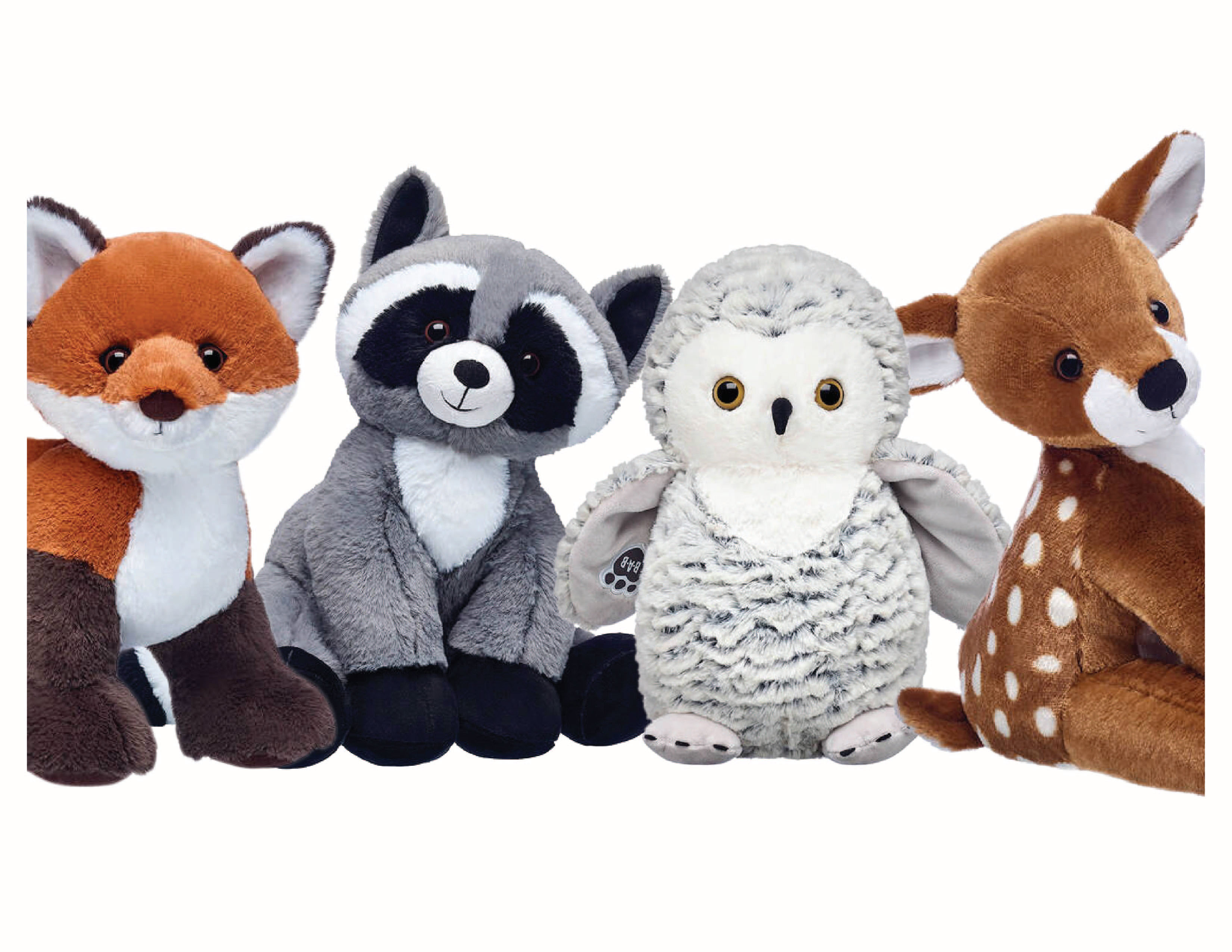 A bear deer fawn FOX plush raccoon snow owl stuffed animals