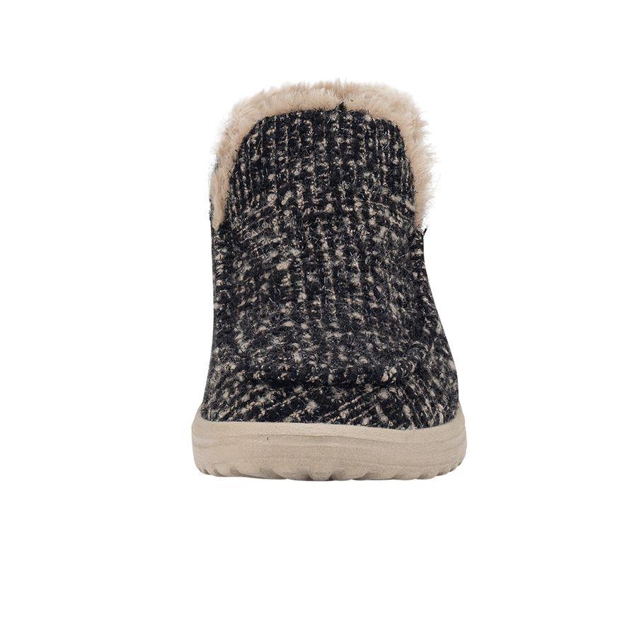 Slip into the moccasin-inspired bootie of your dreams. In a soft wool blend with plush faux fur lining. Super cozy and lightweight.