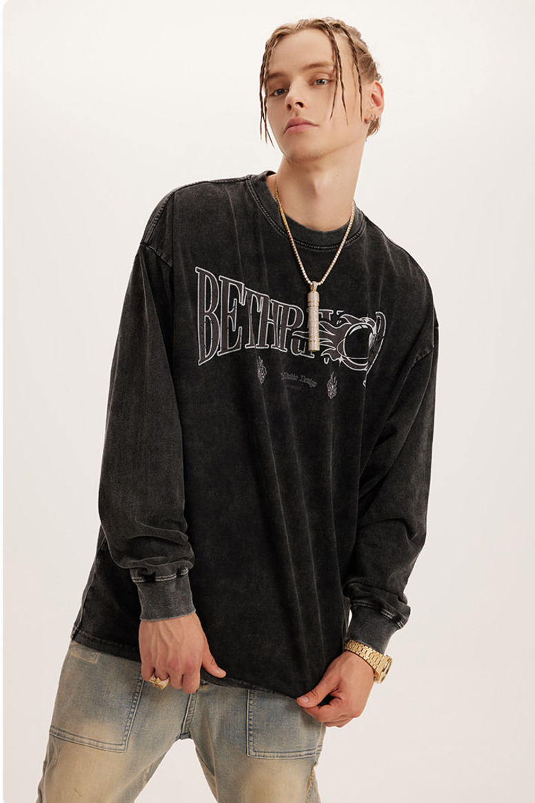 • Retro Billiards 8 Washed Printed Long Sleeve T-shirt