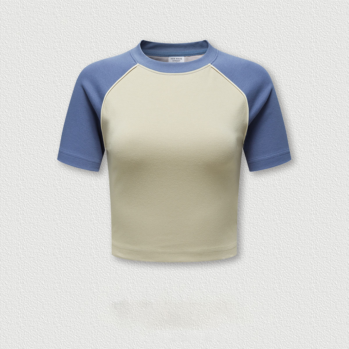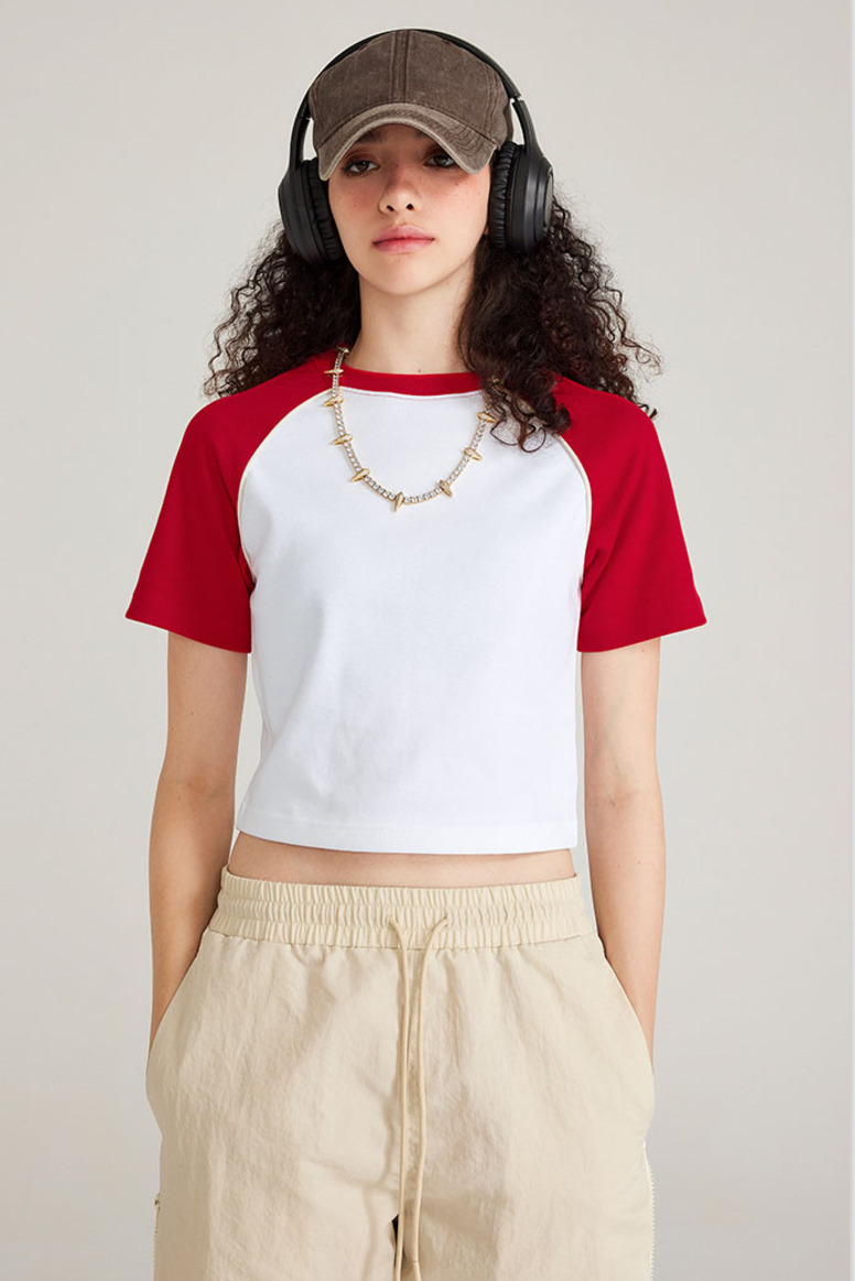 • Women's Retro Contrast Color Cropped Raglan Sleeve T-Shirt
