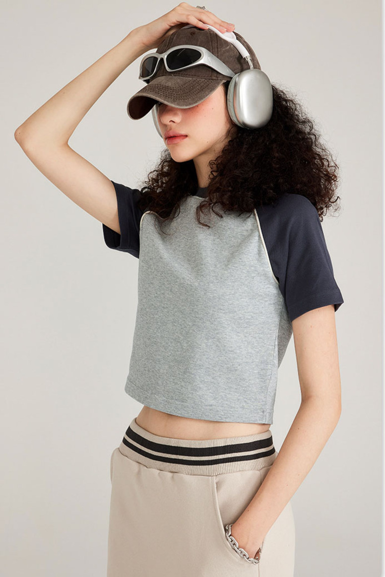 Women's Retro Contrast Color Cropped Raglan Sleeve T-Shirt