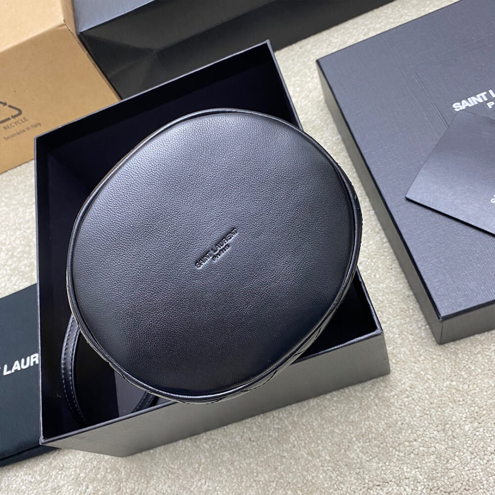 BUCKET BAG WITH FLAP TOP, DECORATED WITH THE CASSANDRE AND DIAMOND-QUILTED OVERSTITCHING.