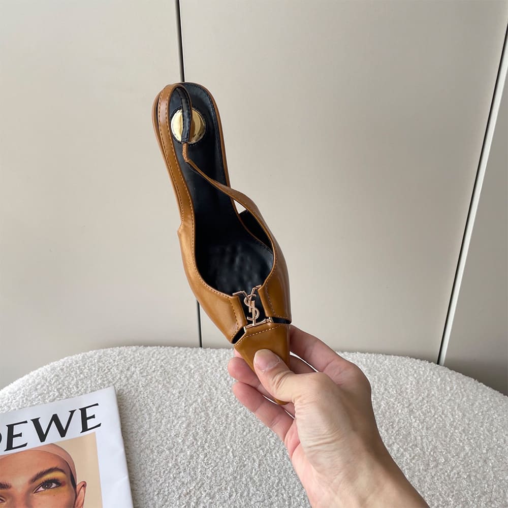 Slingback pumps with a cut-out elongated toe decorated with the CASSANDRE.