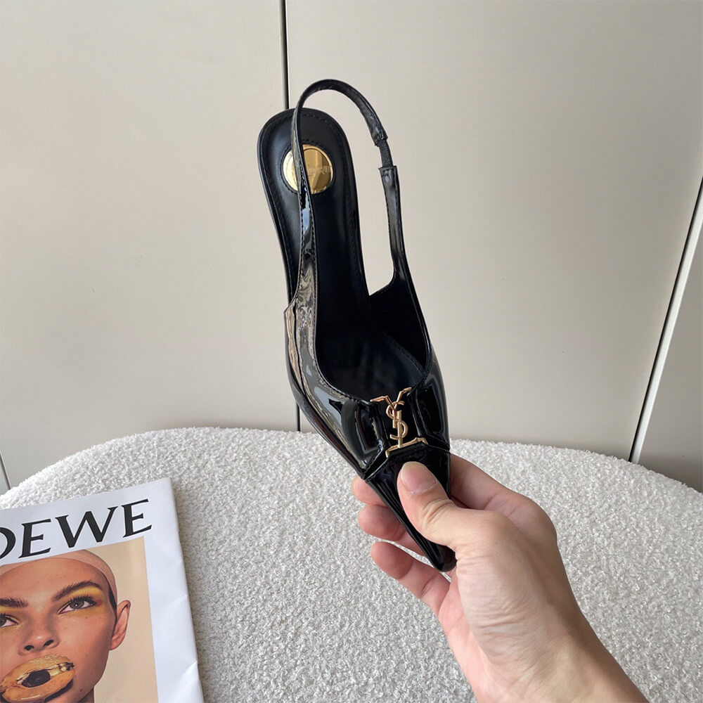 slingback pumps with a cut-out elongated toe decorated with the CASSANDRE.