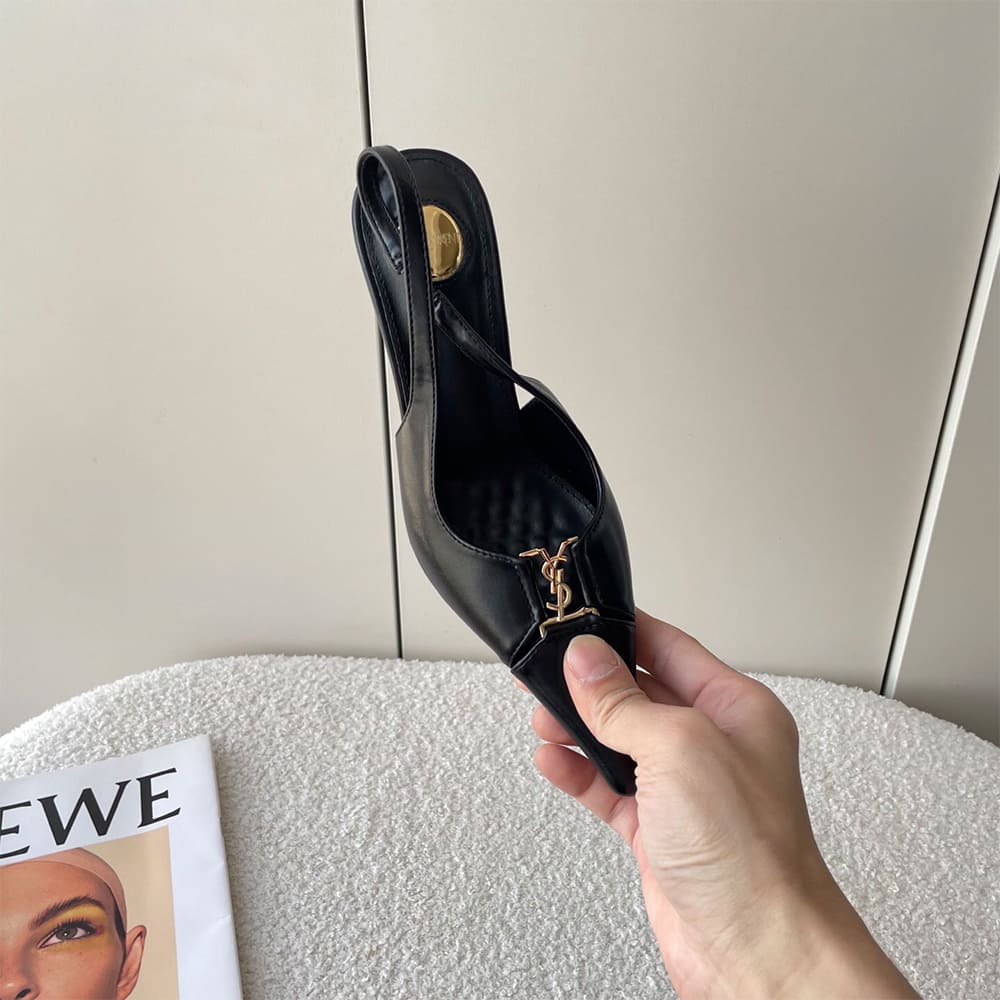 slingback pumps with a cut-out elongated toe decorated with the CASSANDRE.