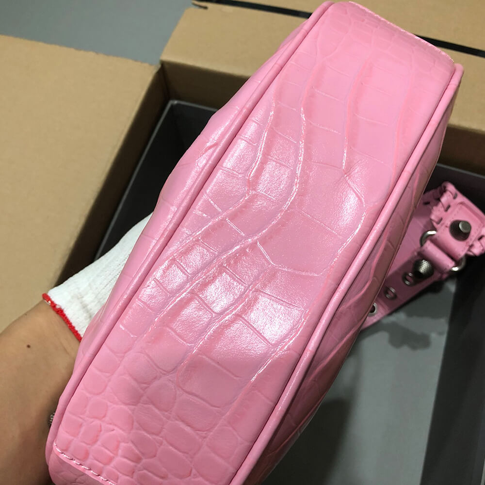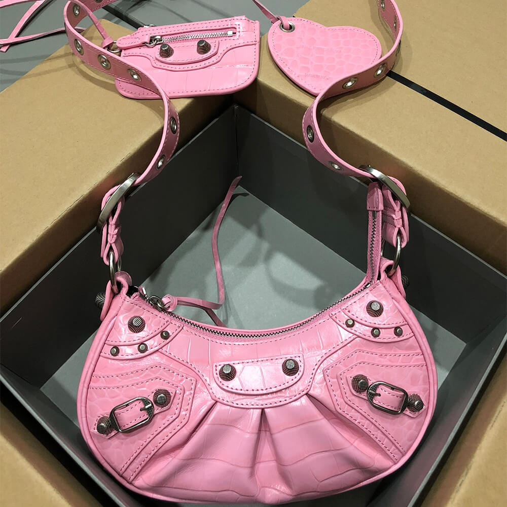 Le Cagole XS Shoulder Bag in light pink Arena lambskin, aged-silver hardware