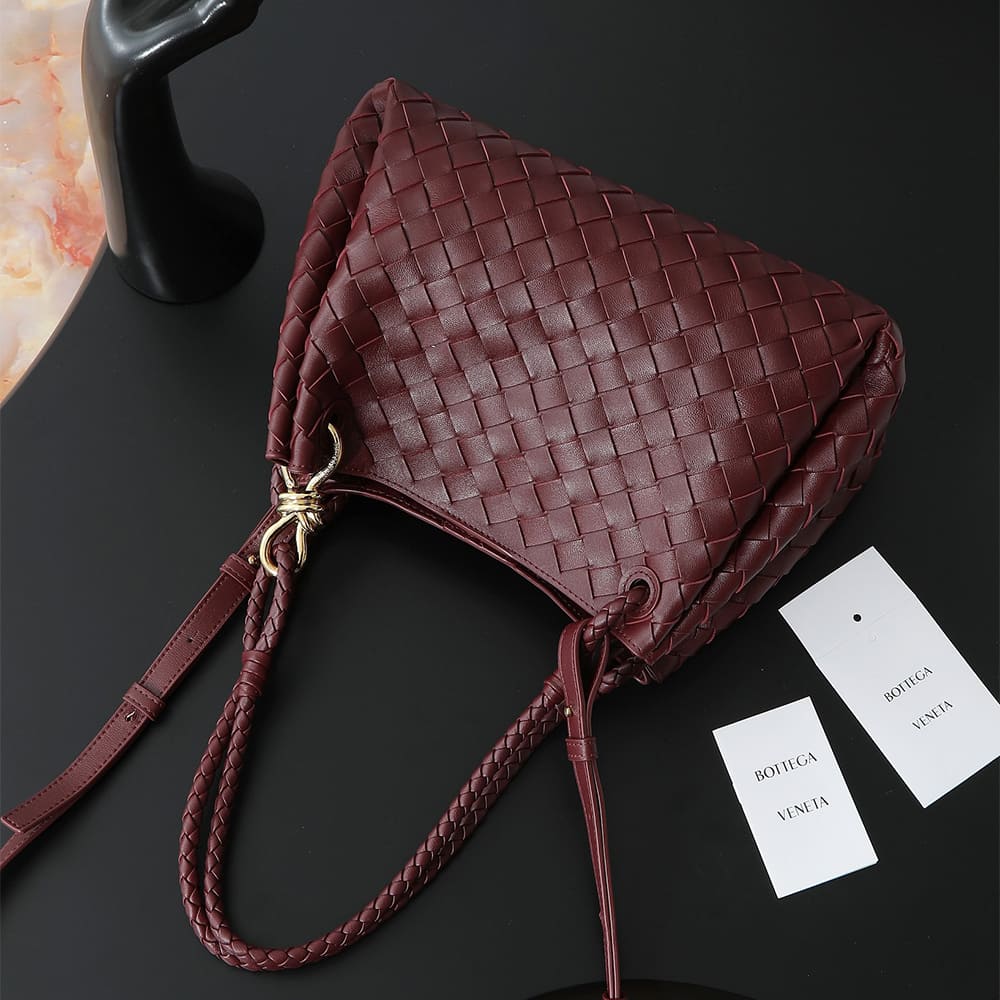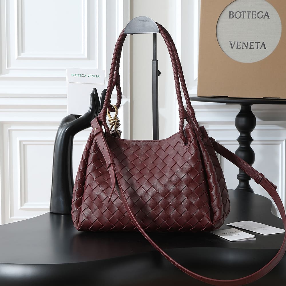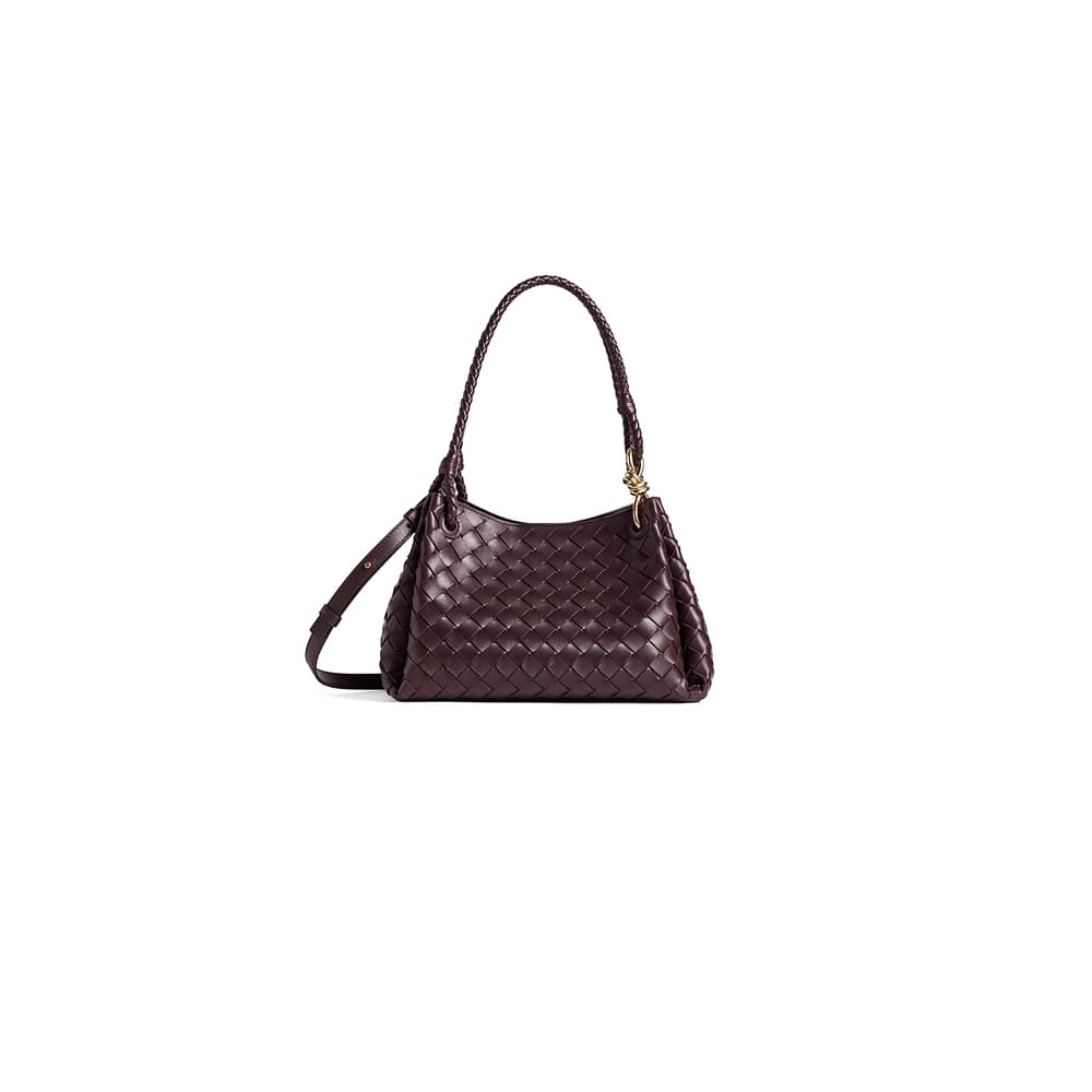 Intrecciato leather shoulder bag with detachable cross-body strap