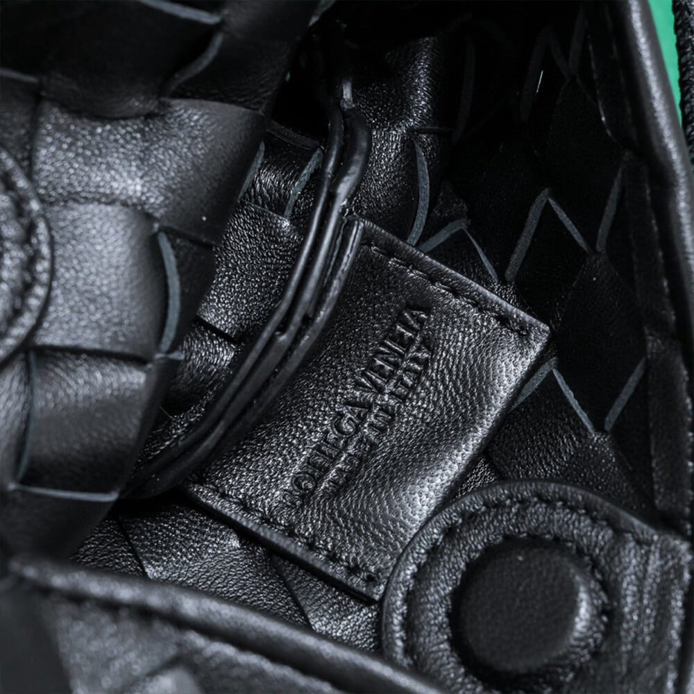 Mini Intrecciato leather cross-body bag with metallic top handle