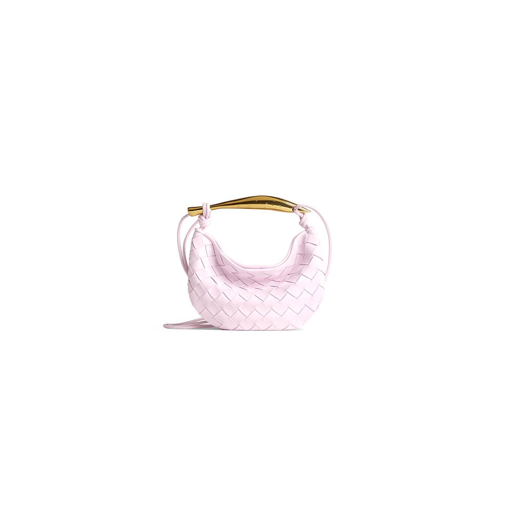 Mini Intrecciato leather cross-body bag with metallic top handle