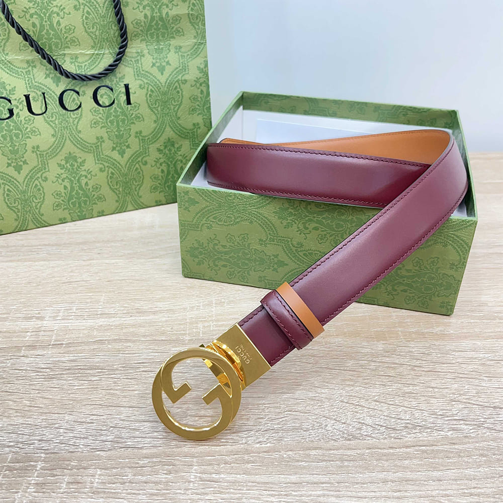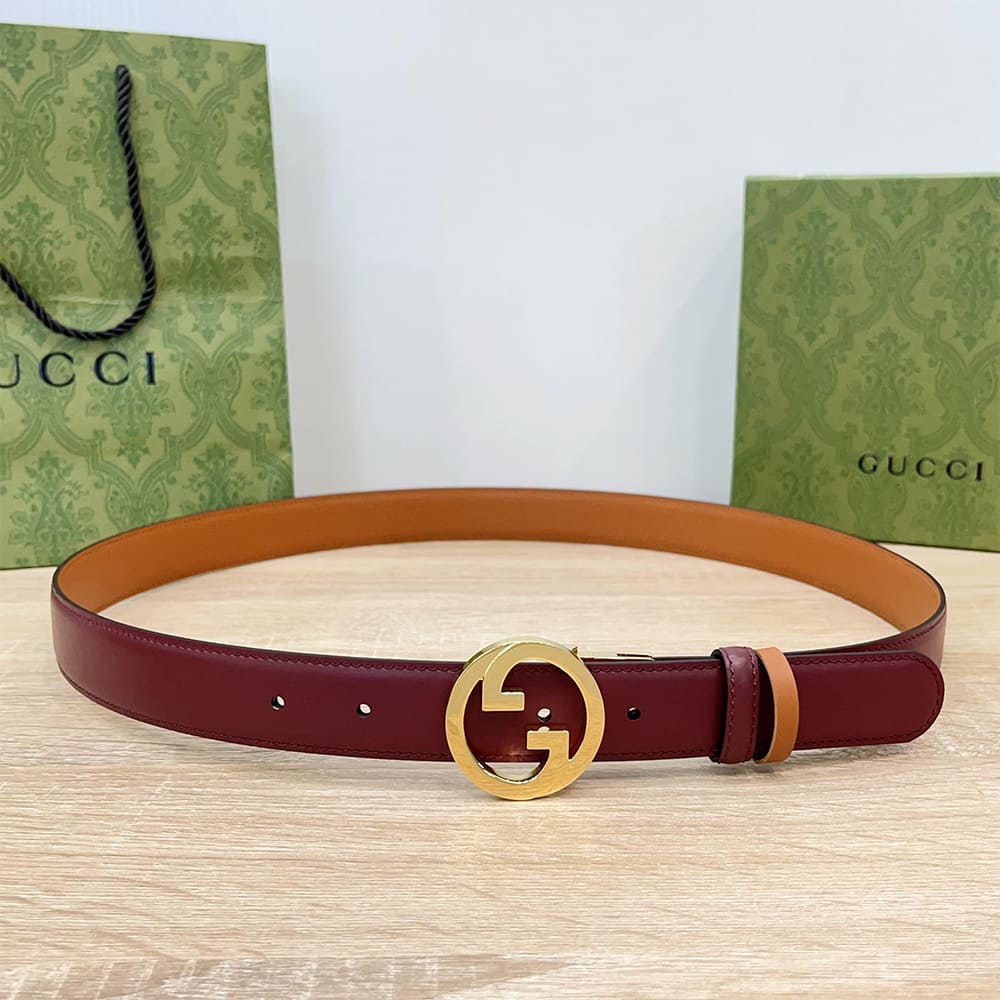 Gucci Rosso Ancora red leather on the one side, brown leather on the other