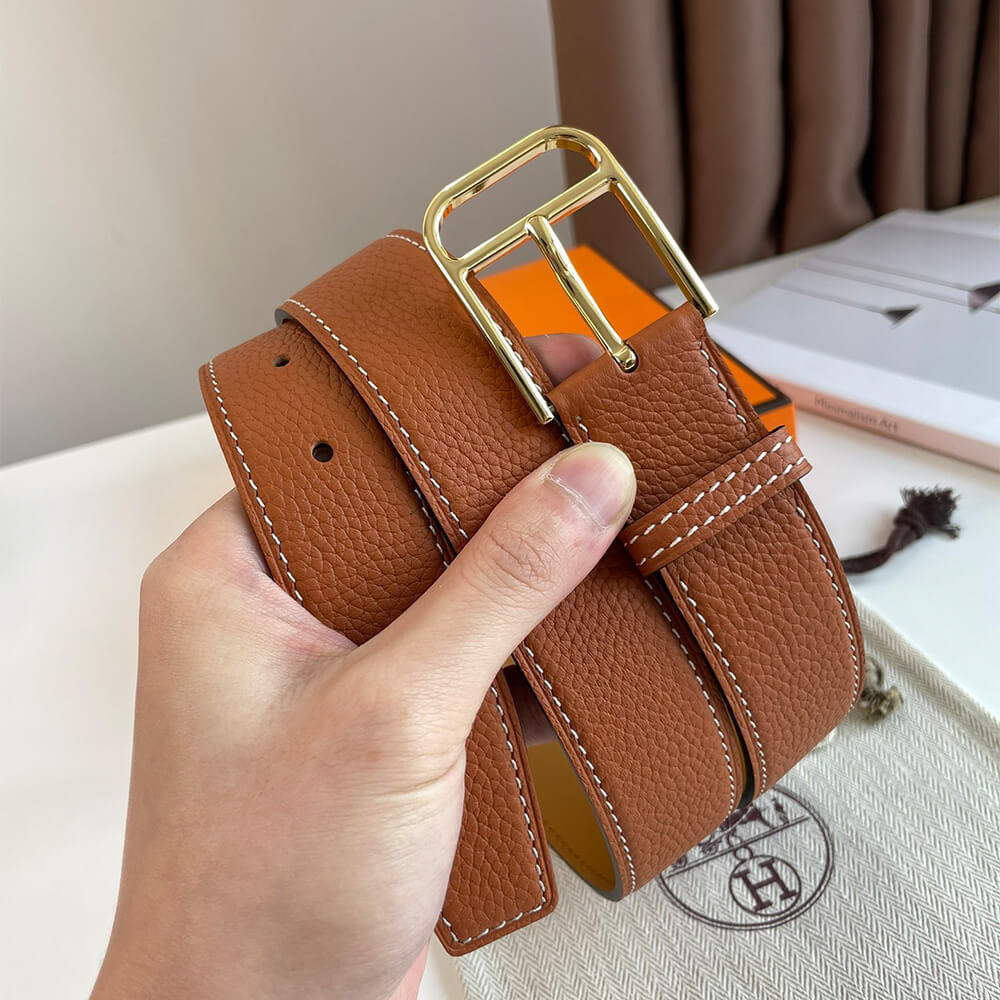 Leather belt in Barenia Faubourg calfskin with metal buckle.