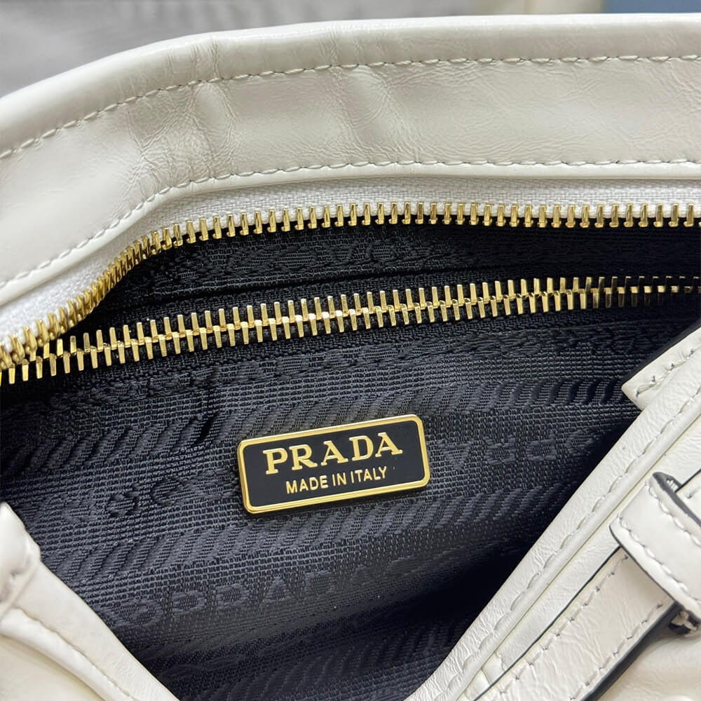 Nappa and logo-print nylon interior with center zipper pocket and patch pocket