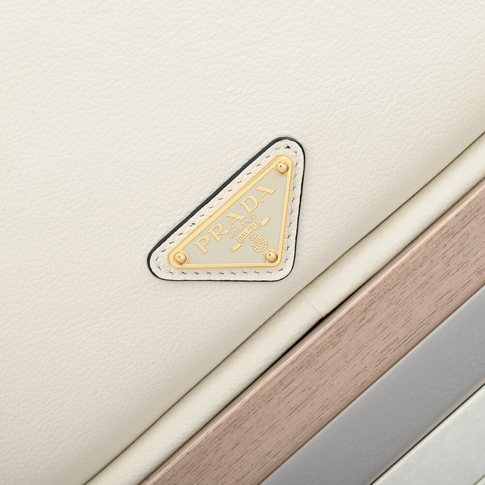 Enameled metal triangle logo on the front
