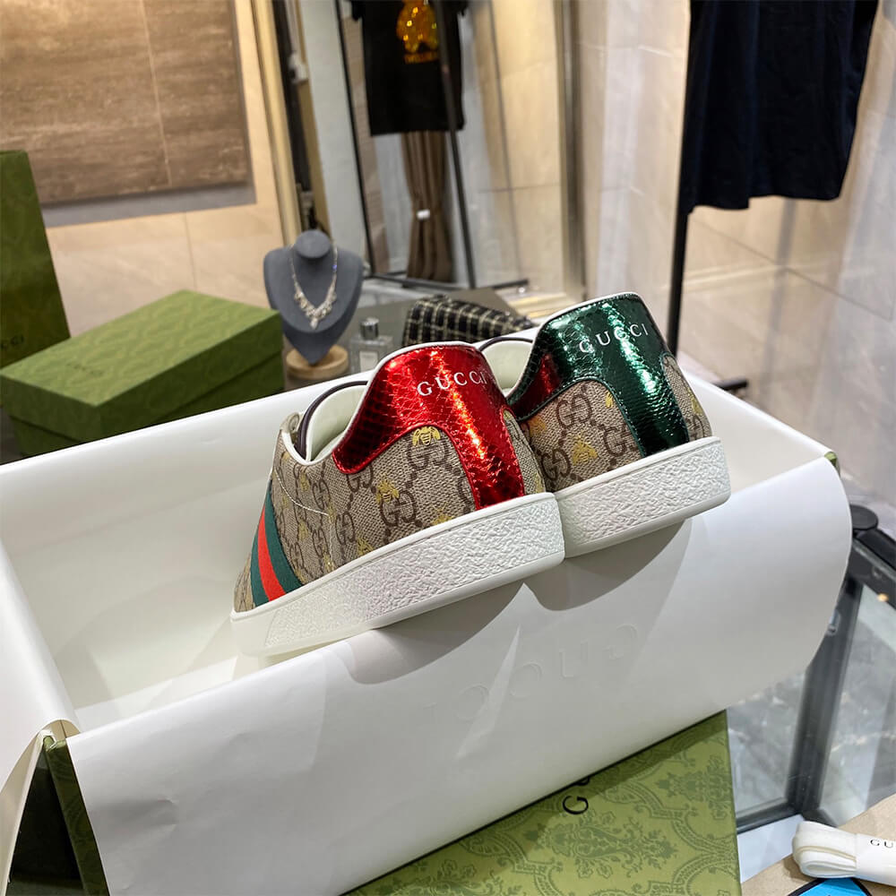Beige/ebony GG Supreme canvas with gold bees print