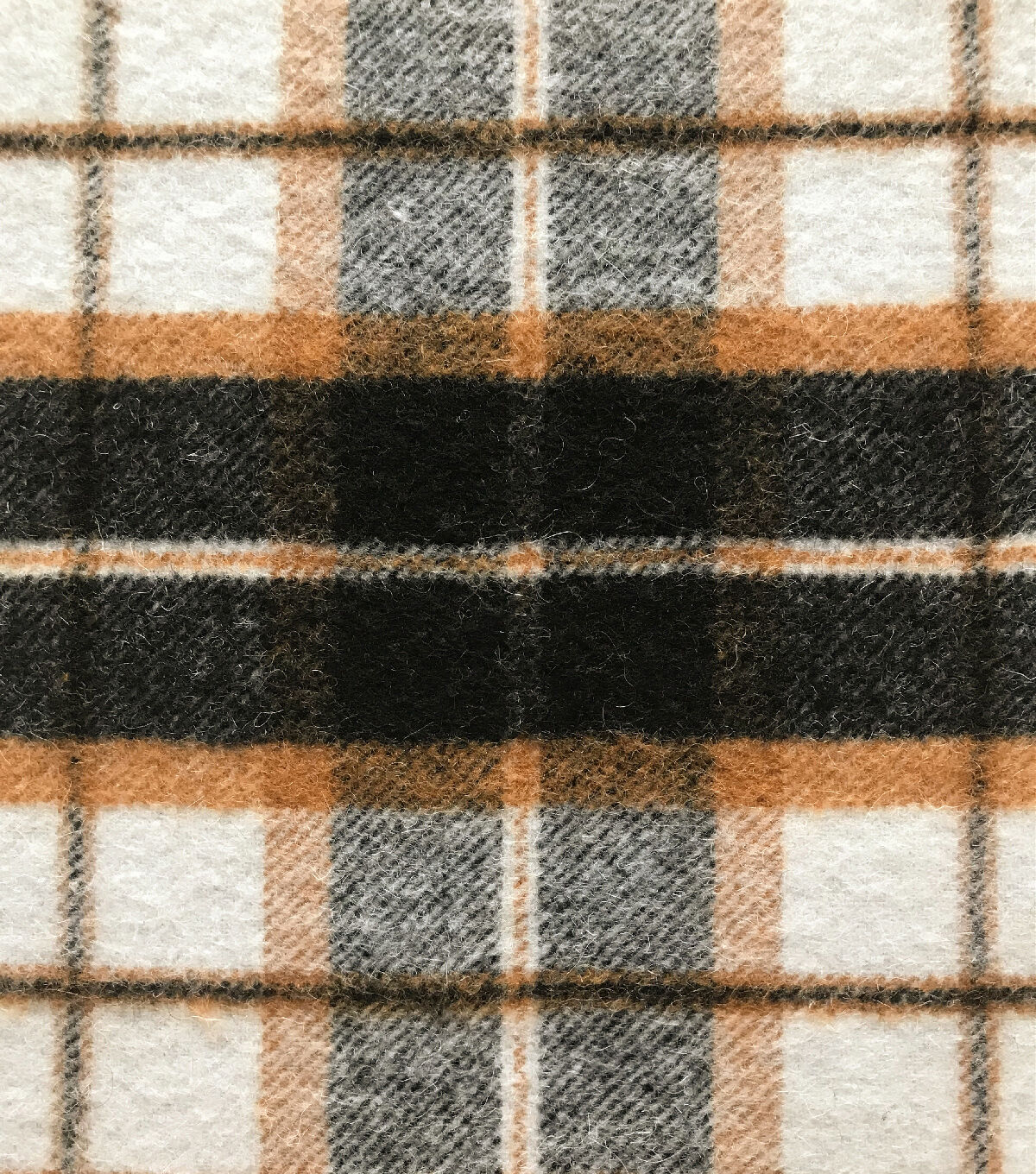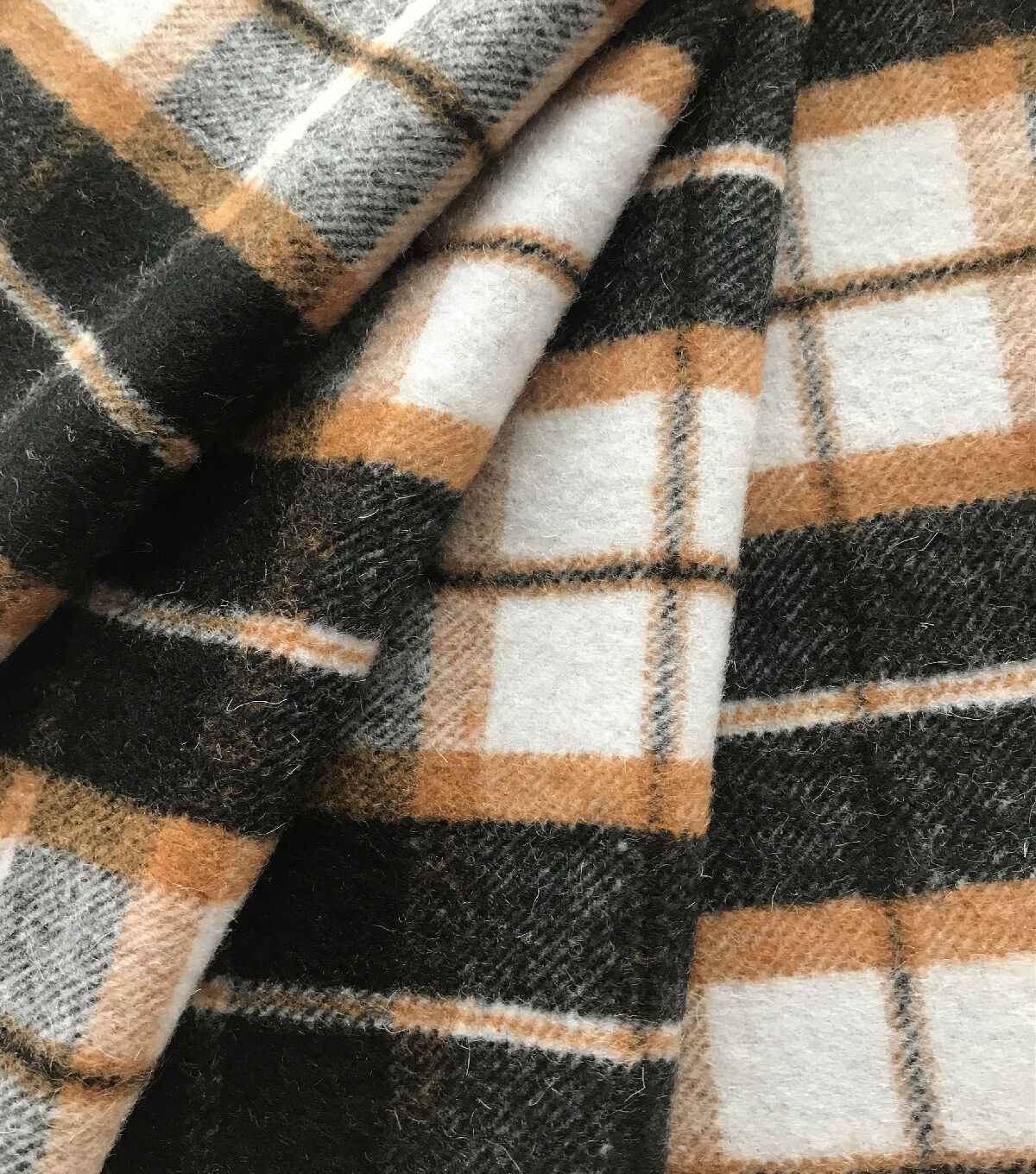 • Wool Blend White Black Tan Plaid Sportswear Fabric