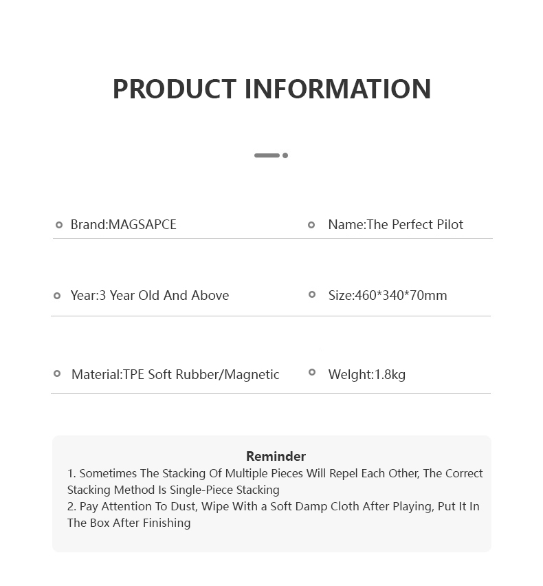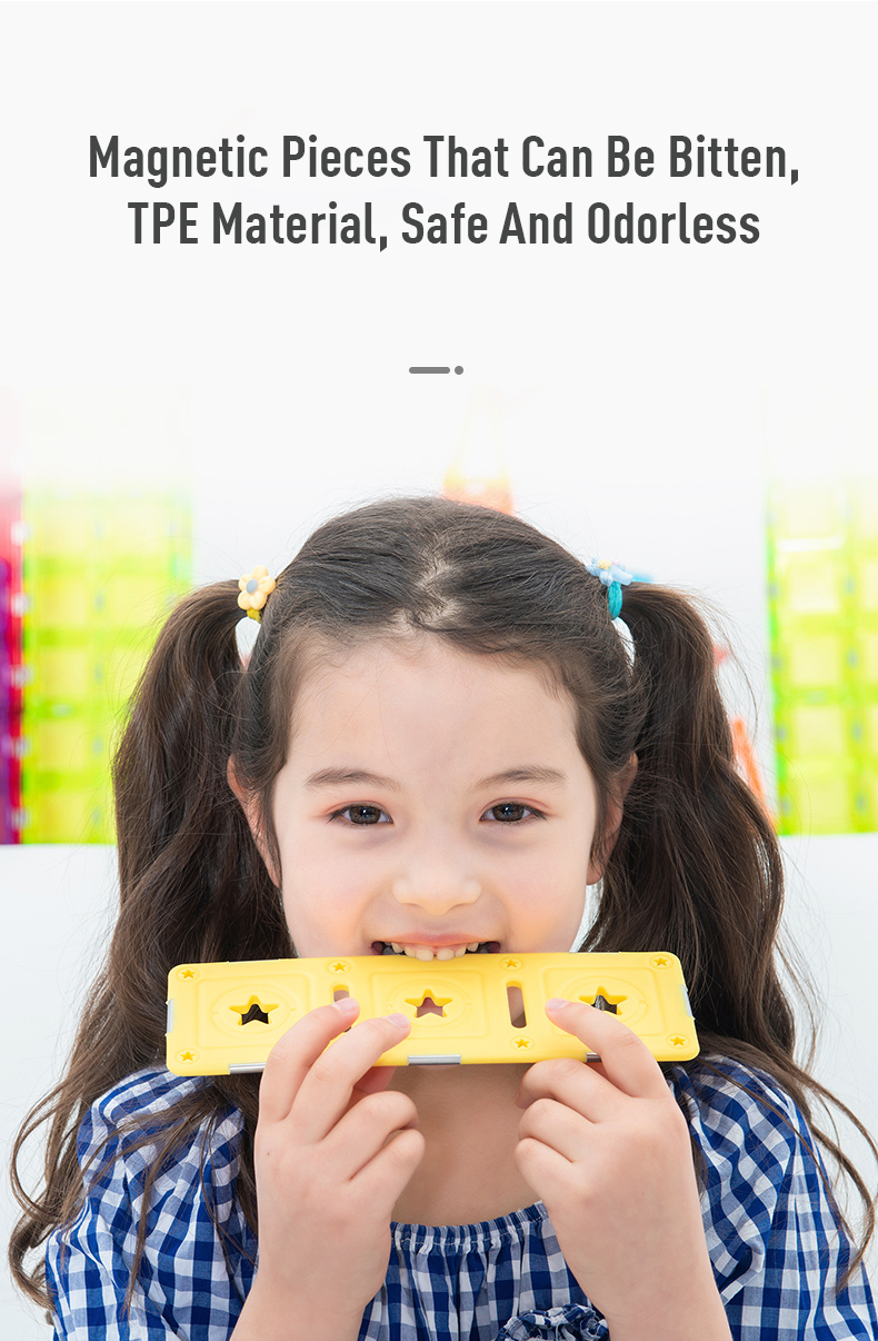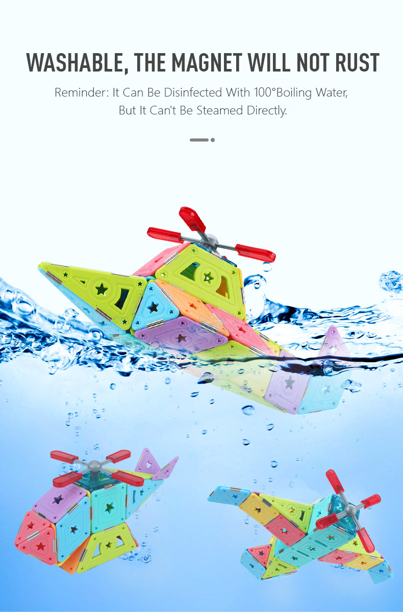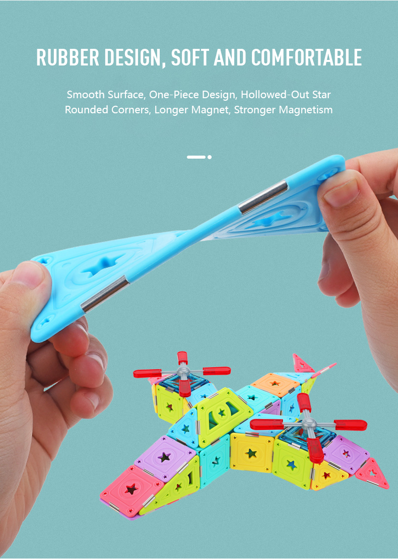 Let your child be a little pilot in his own world! These pure magnetic pieces can help children's dreams come true. The dreamy hollow-star decoration makes the model more exquisite. The finished product is colorful and will be the most dazzling airplane in the blue sky. We will provide some template guide books for children to help them put the pieces together. What's more, this MAGSPACE piece has been patented and won many awards. It is a very good choice for cultivating children's color cognition, creativity, and practical ability!
