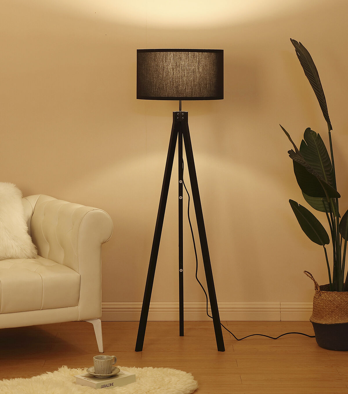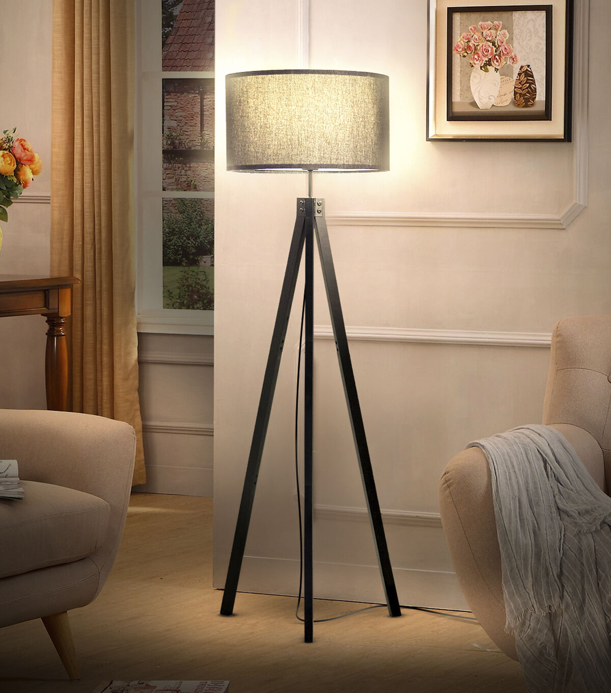A wooden tripod lamp made for the modern era. Brightech's Eden pairs well in any environment, with it's solid wooden base and neutral fabric shade. It is outfitted with a three-way LED bulb so you can create your perfect setting and mood.