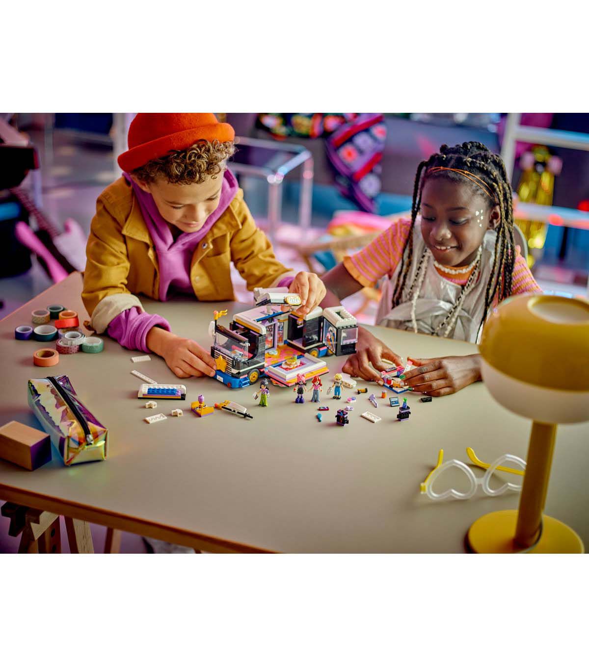 • Tour bus playset toy for musical role play – The LEGO Friends Pop Star Music Tour Bus set for girls, boys and kids aged 8 plus includes 4 mini-doll characters and lots of accessories