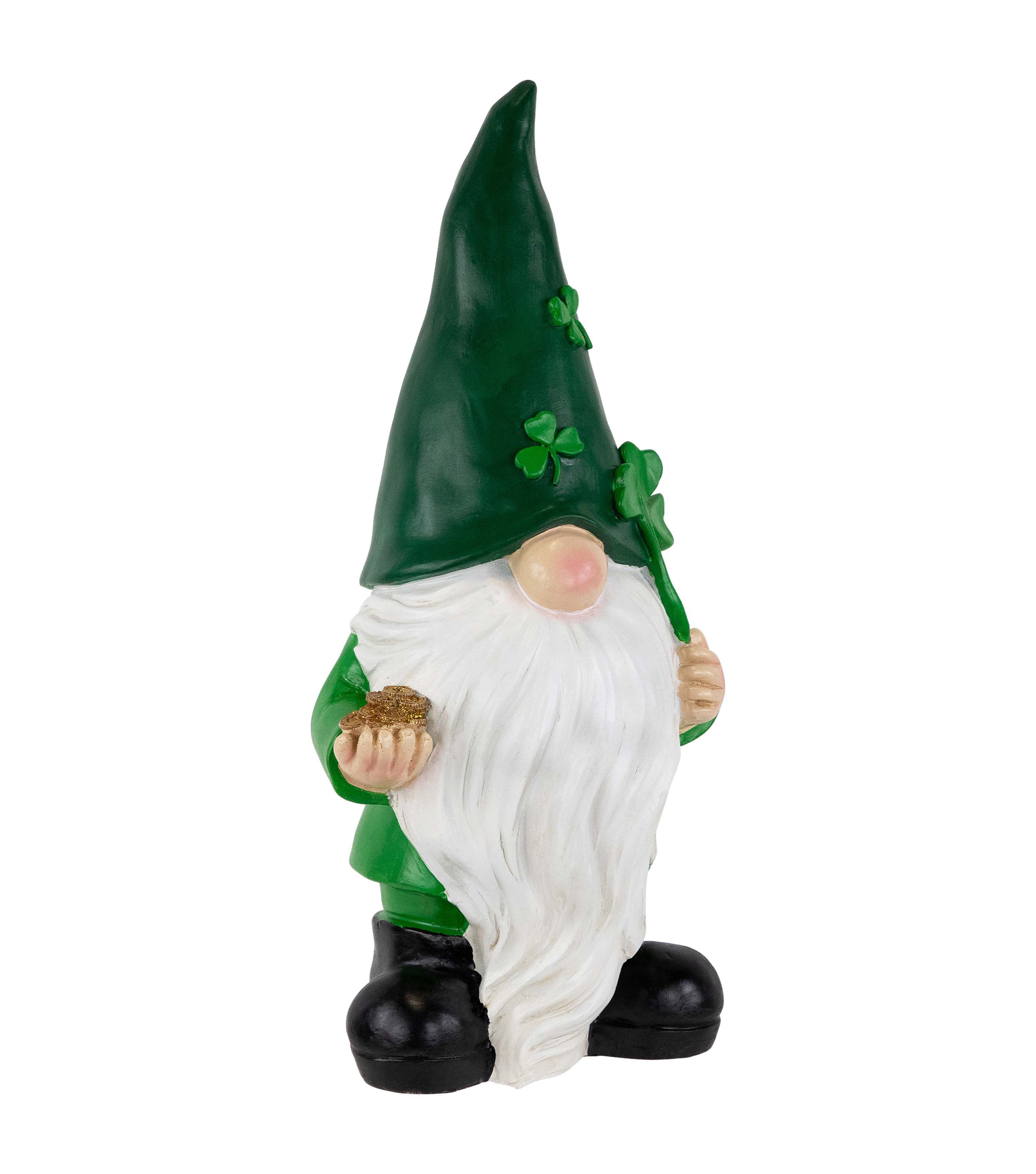 16.75" St. Patrick's Day Shamrock Gnome Outdoor Garden Statue