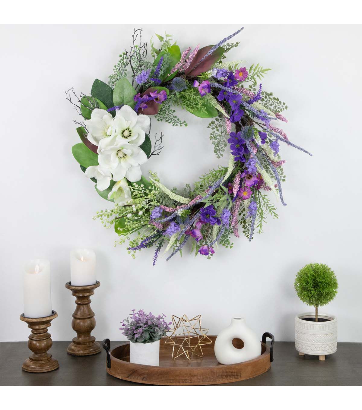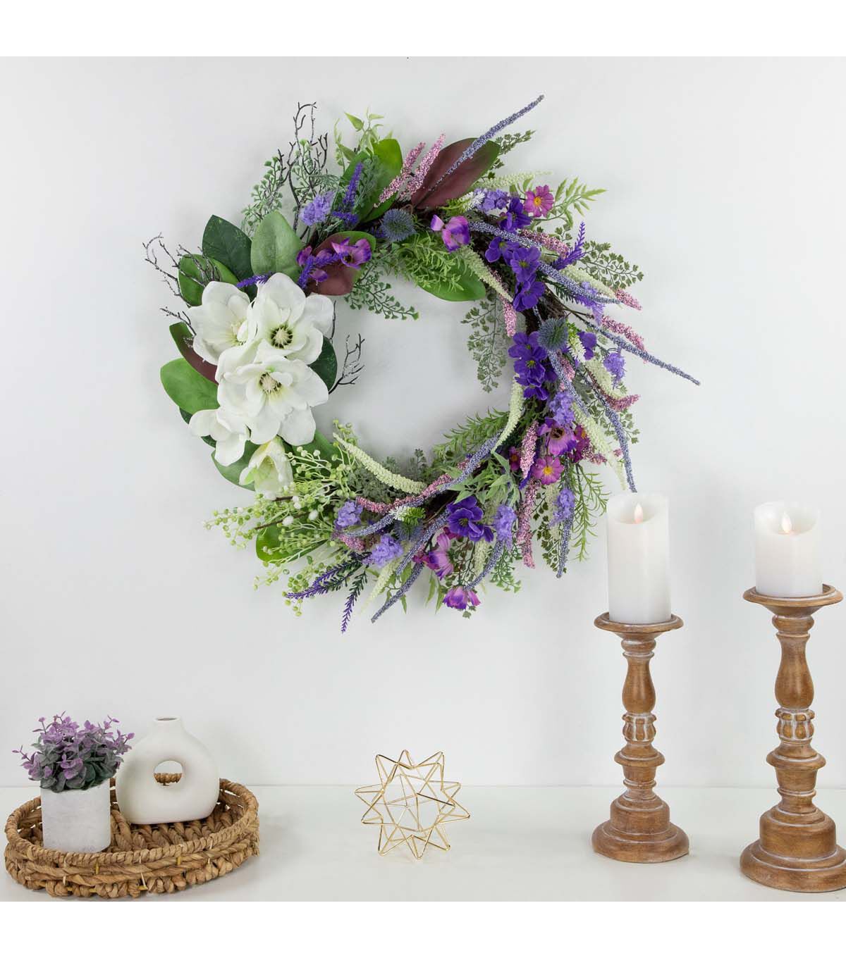 Northlight 24" Spring Purple Mixed Wildflowers & White Magnolias Wreath