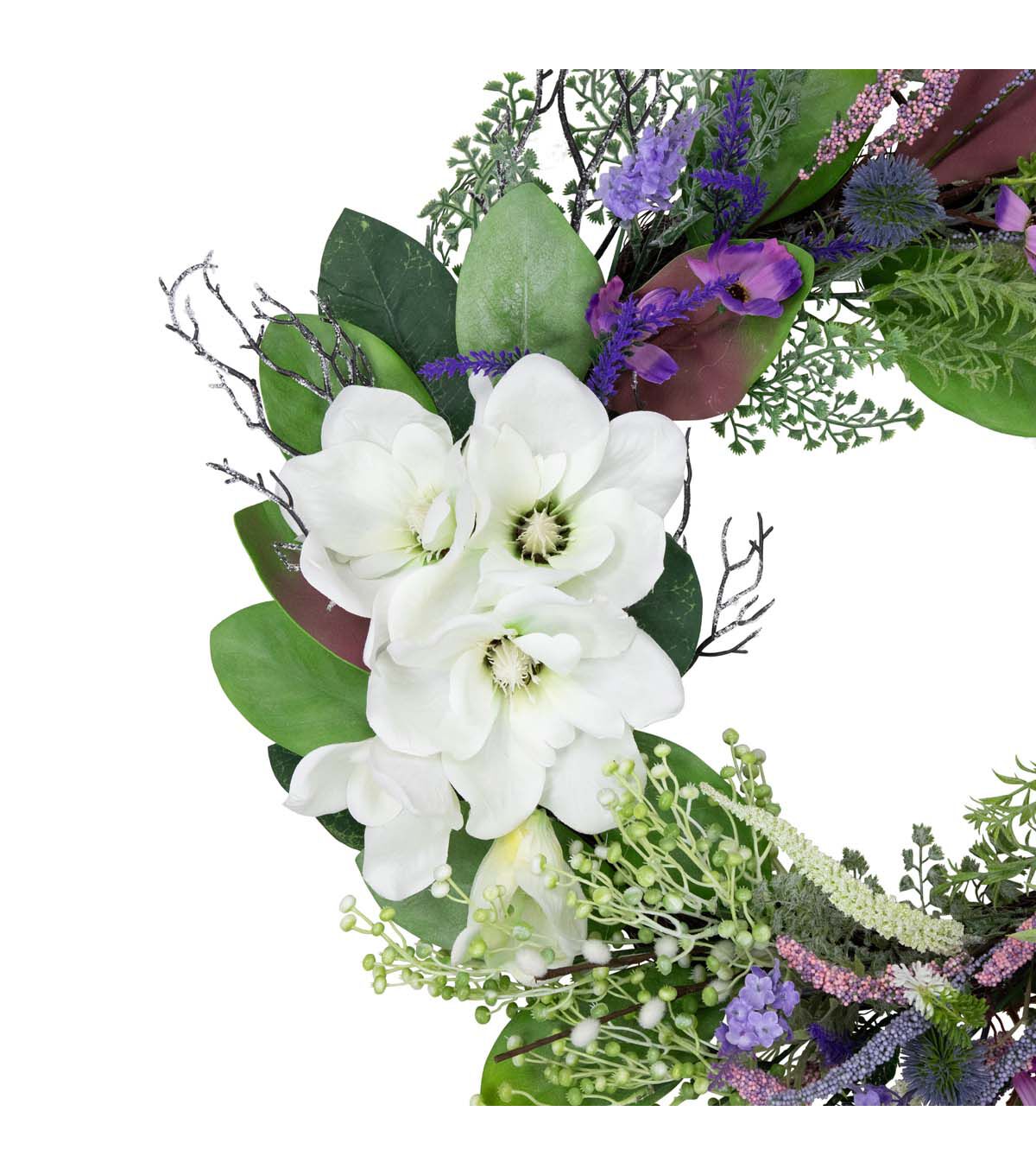 • Northlight 24" Spring Purple Mixed Wildflowers & White Magnolias Wreath
