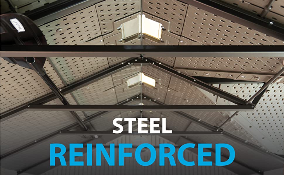 Heavy-duty steel trusses provide additional roof strength; backed by a 10-year limited manufacturer warranty