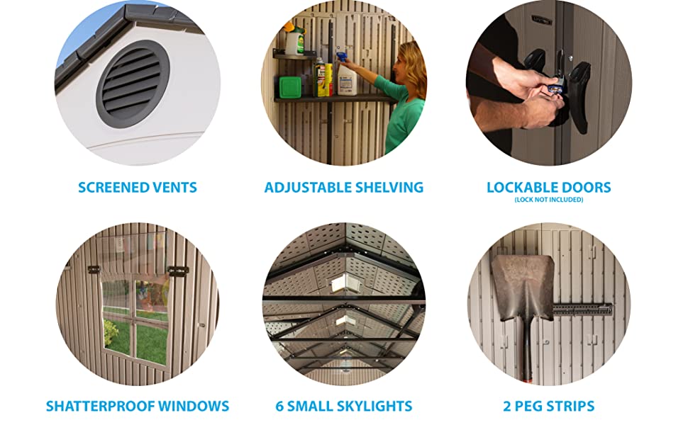 With various features including shatterproof windows, skylights, custom shelving and more, a Lifetime Shed is the perfect aWith the Lifetime 8' x 12.5' Outdoor Storage Shed, your outdoor space will go from drab to fab, offering a dose of style as well as an immense amount of storage to spruce up the yard and more. This durable steel-reinforced shed offers plenty of space for outdoor gear. Interior shelving makes organization easy, while its lockable doors provide security.ddition to your backyard.