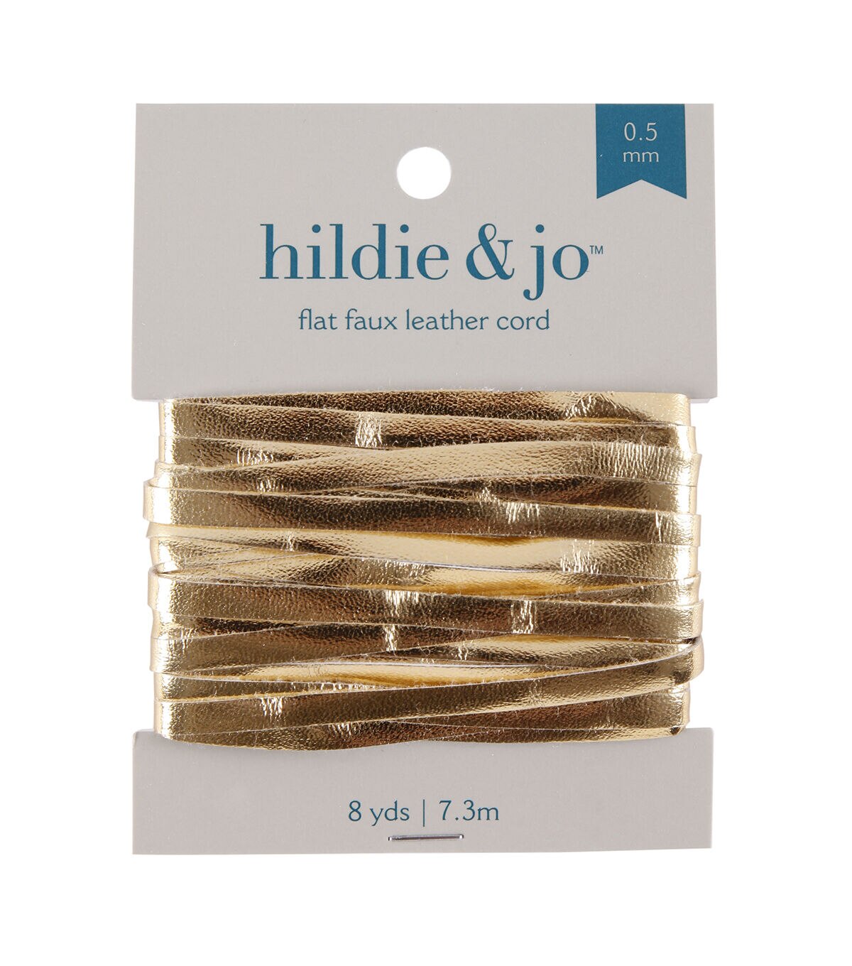 Craft beautiful DIY jewelry using this hildie & jo Flat Faux Leather Cord-Gold. This flat gold cord measures 0.5 mm in width and is made of faux leather. You can add beads, charms or pendants to create different types of necklaces, cord bracelets, chokers and lots more.