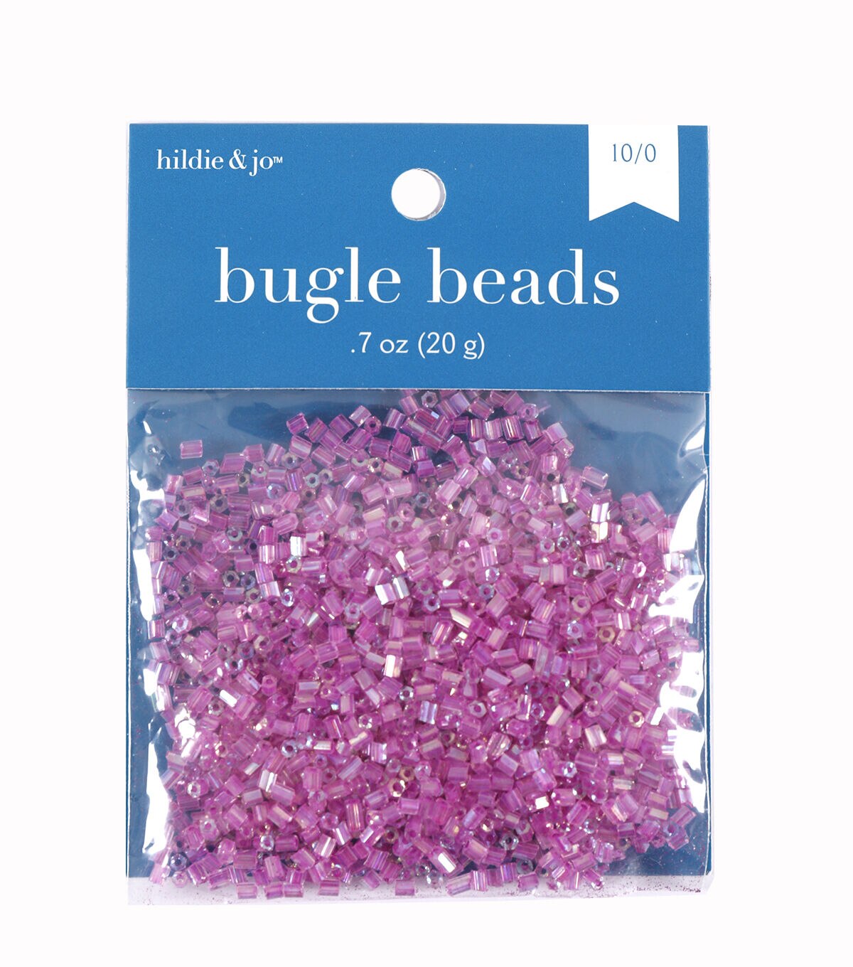 Create statement jewelry pieces using the hildie & jo Glass Bugle Seed Beads - Purple. This pack contains glass seed beads that are versatile enough to be used alone as spacer beads or combined to create long, beautiful strands. These purple beads sporting a rainbow effect can also be incorporated into needlework projects.
