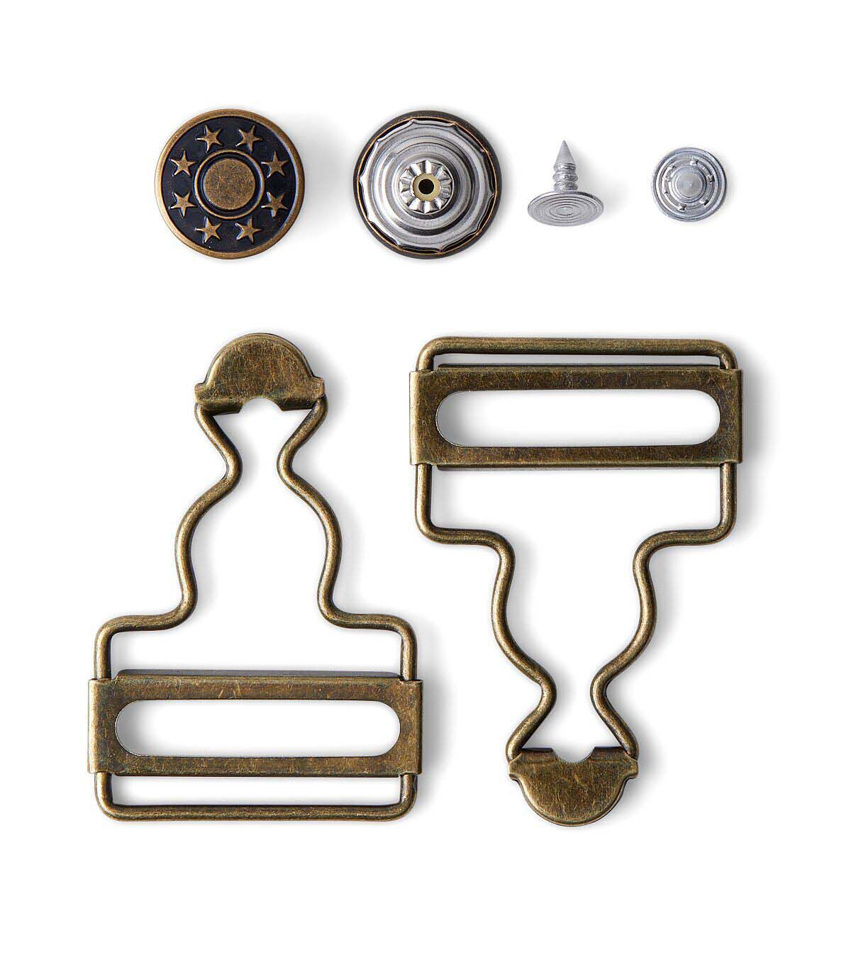 The set includes two no-sew buttons with tacks and two overall buckles, making it easy to get started on your project right away. Simply use a hammer to apply the no-sew buttons and attach the buckles to your bibs. With this set, you'll have everything you need to create a professional-looking finished product.