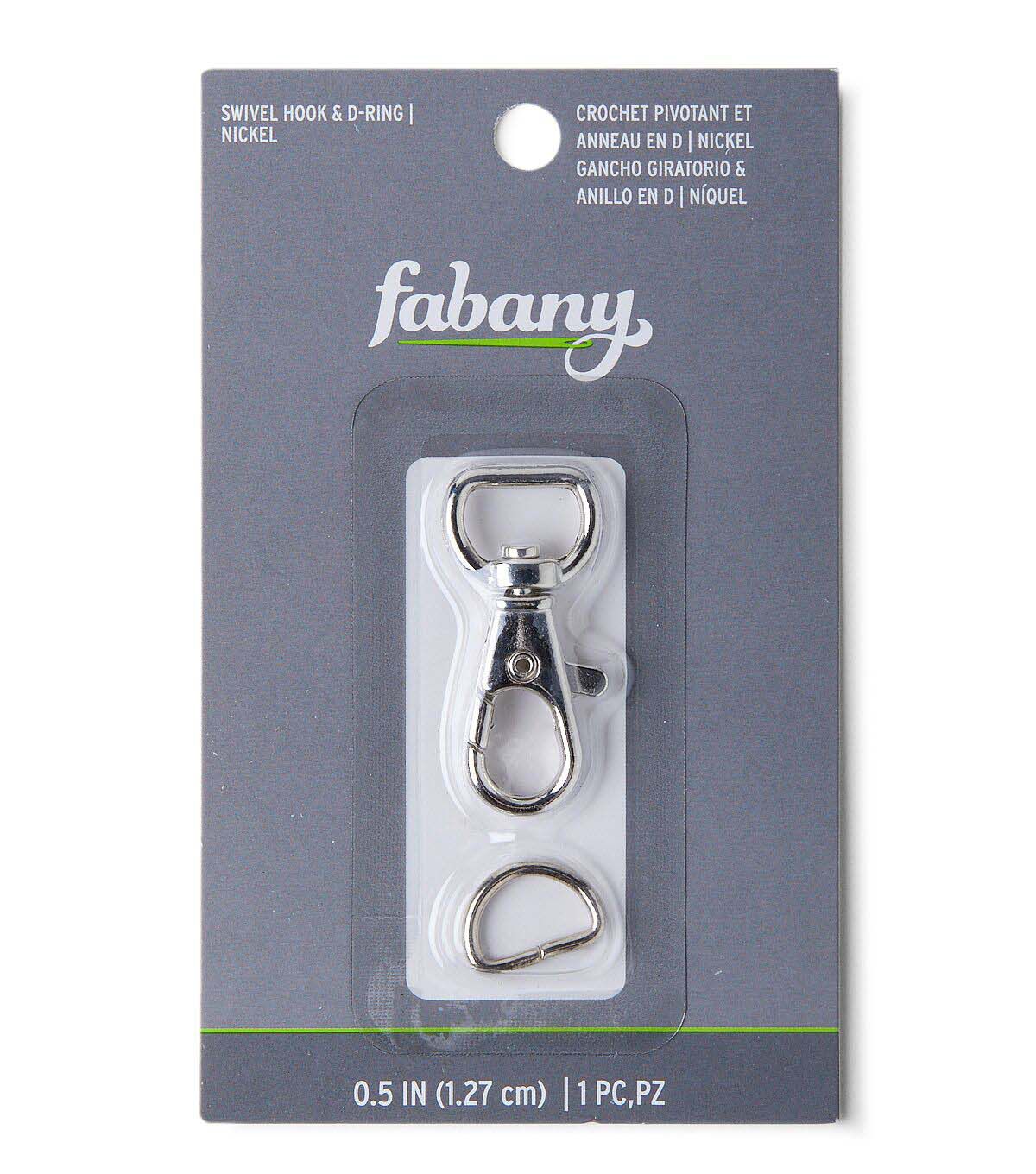Looking for a reliable and stylish hardware accessory for your wristlets and small clutches? Look no further than the Fabany 1/2" Nickel Swivel Hook & D Ring 2pc! Made with durable zinc alloy, this swivel hook and D ring combo is perfect for attaching straps to your wristlets and small clutches, ensuring they stay secure and easy to carry.
