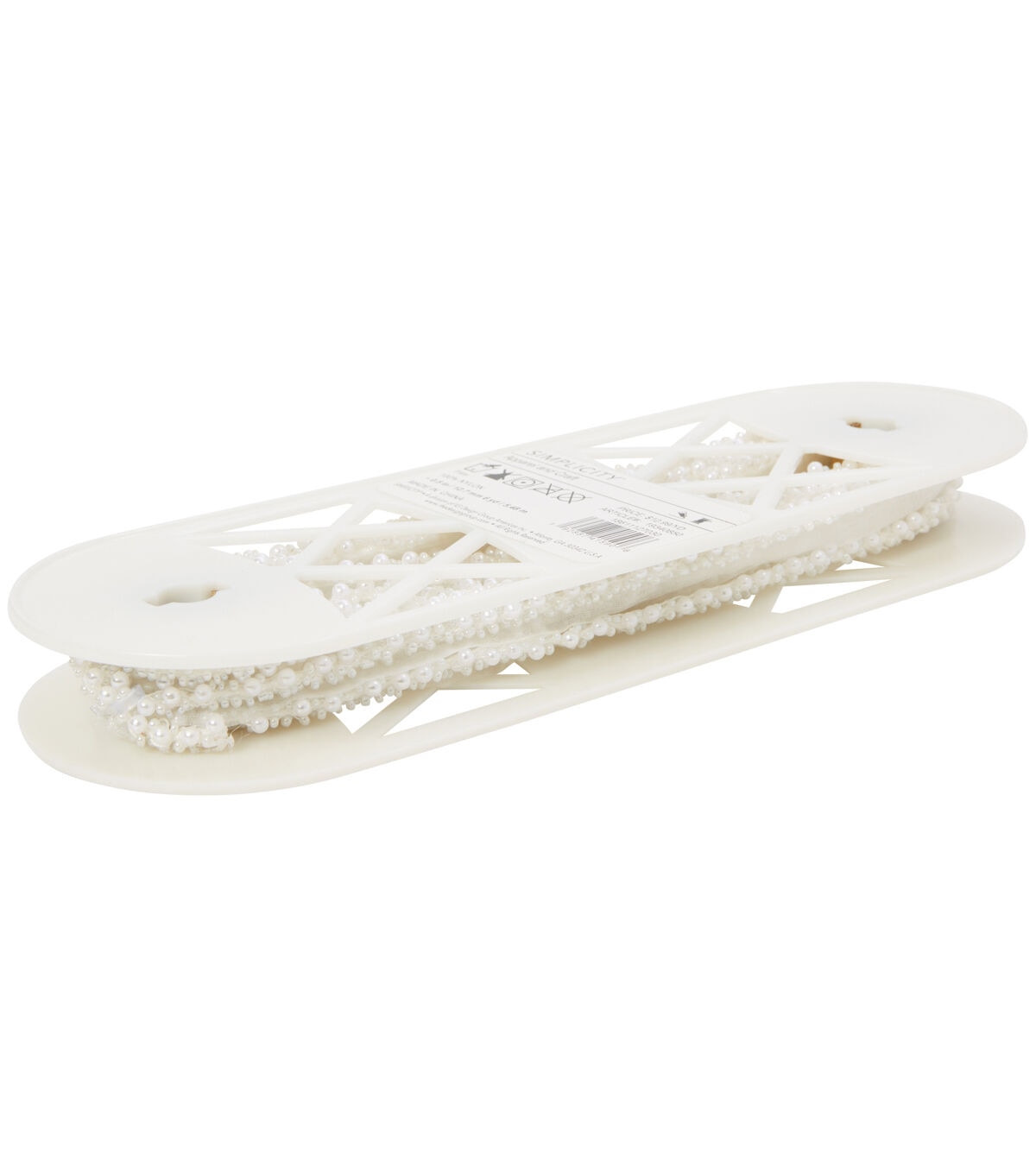Decorating your fabric creations will be fun with the Simplicity Lace with Pearls in White. You can use it to embellish your handmade totes, wallets, apparel, lampshades, cushion pillows and more.