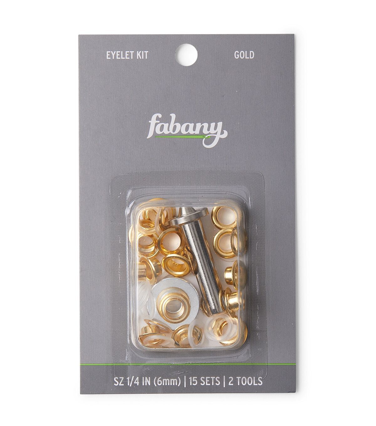 - Contents: 15 eyelet sets, anvil, and setter