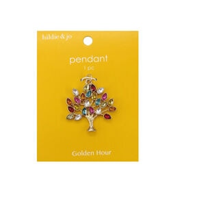 Make a statement this season wearing the jeweled tree pendant. In gold, the tree trunk and branches are smooth gold. Throughout the top of the tree and drop shaped stones in a rainbow of colors! Just add a necklace and you are ready to go!