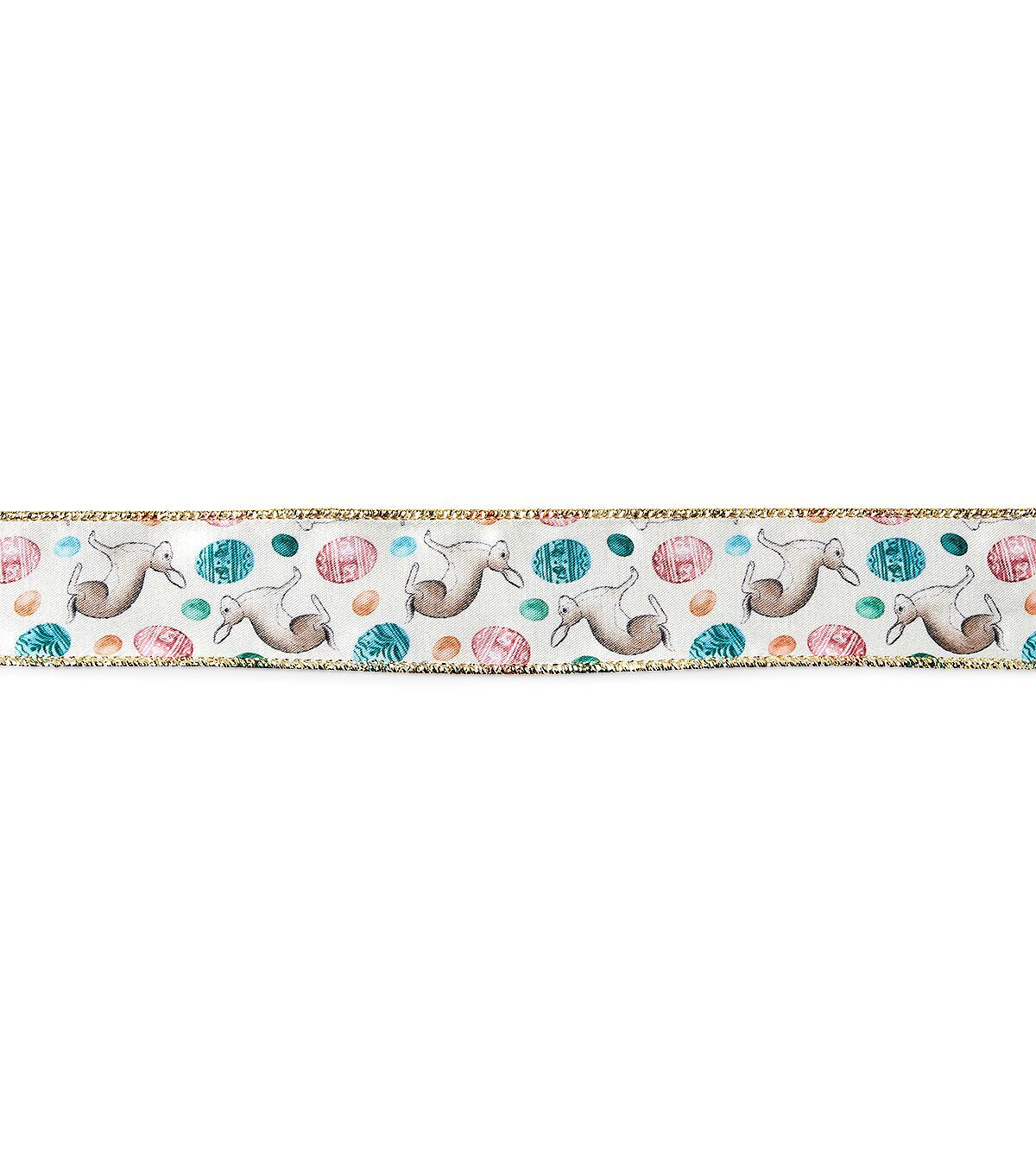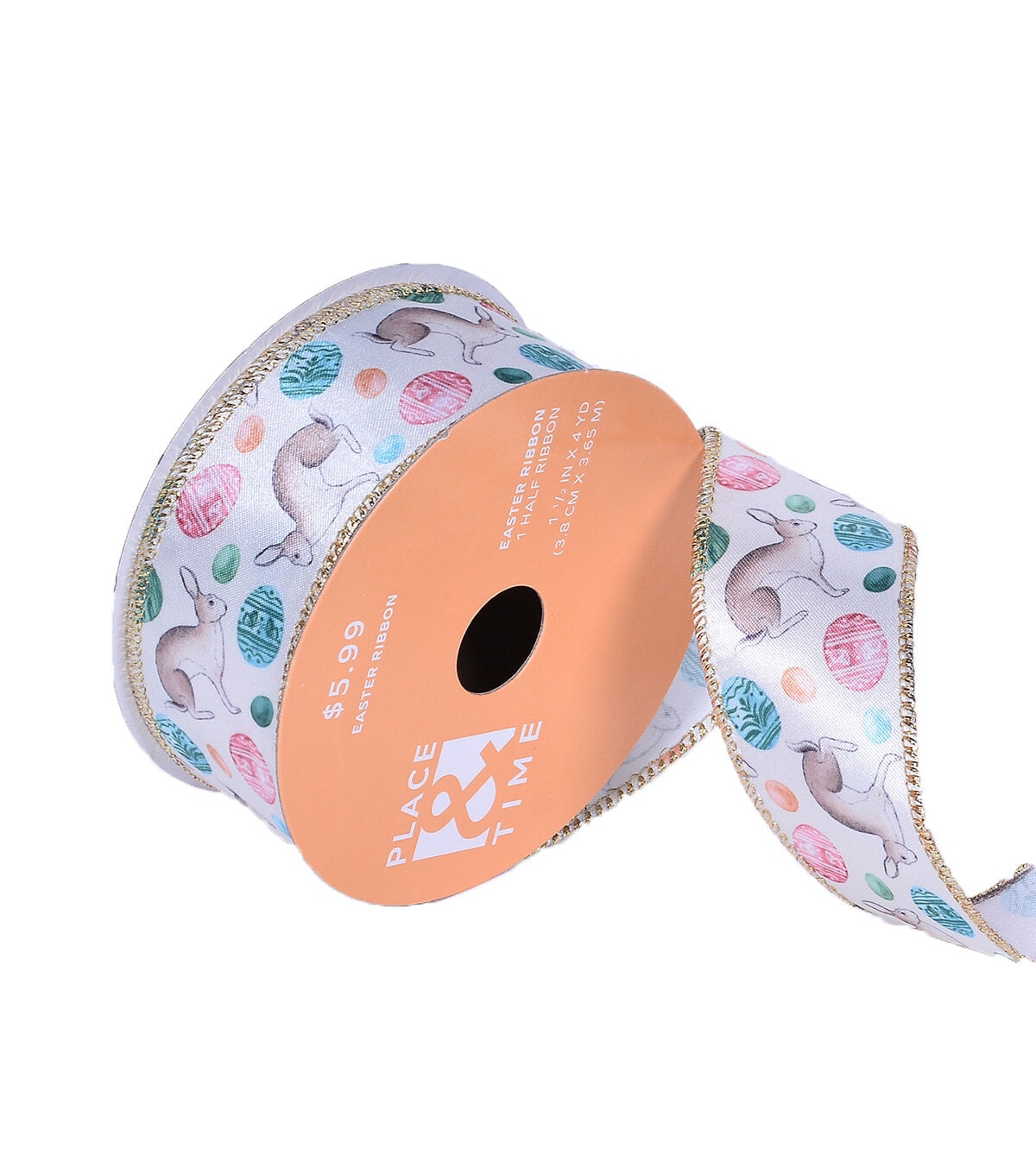 Use the Easter Bunnies & Eggs on Satin Ribbon by Place & Time to accentuate handmade decor accents this Easter. It sports a white shade and a print of bunnies and decorated Easter eggs in lovely contrasting hues. You can also make a tiffany bow and use that to accent a DIY wreath.