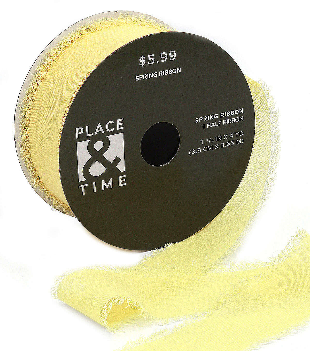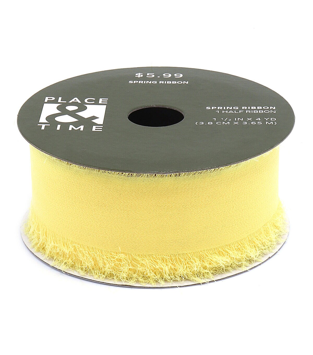 Accentuate handmade decor accents this spring with the Spring Yellow Frayed Chiffon Ribbon by Place & Time. It sports a yellow shade and is designed with frayed edges that add visual delight. You can also twist it into a lovely bow and use that to accent your wreath or garland. Team it with a pastel-hued ribbon to create a ruffled ribbon wreath for the front door.