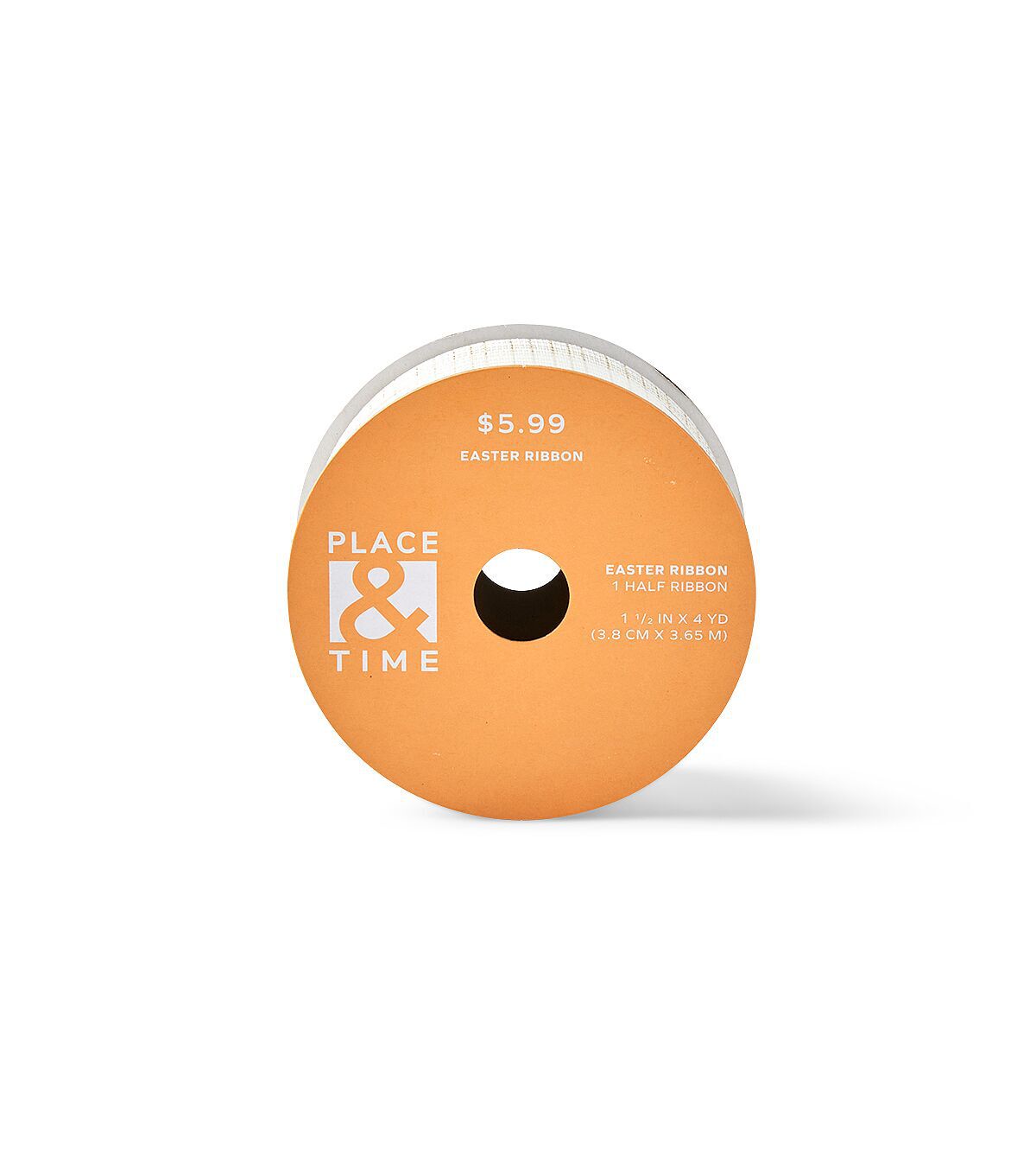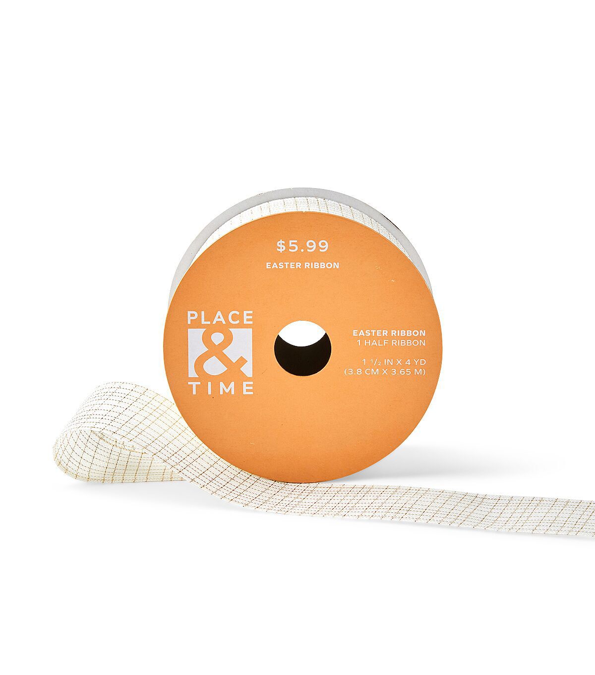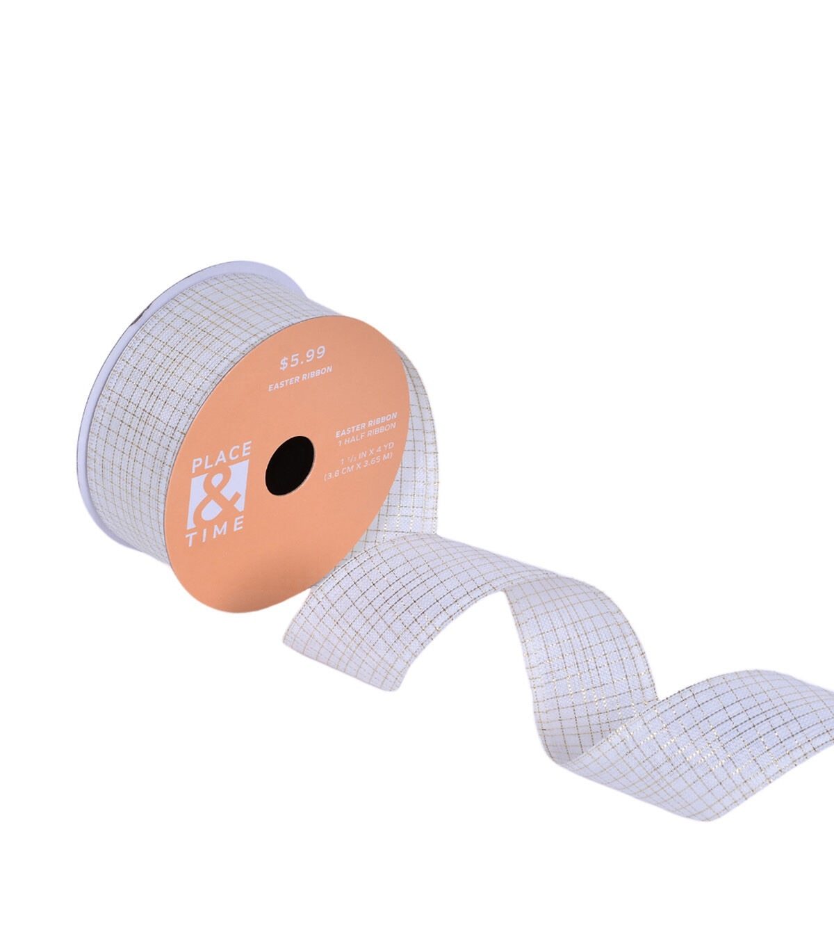 The Easter Gold Metallic Ribbon by Place & Time will make the perfect addition to your Easter home decor projects. It sports a white shade and a checkered pattern in a gold tone with a metallic finish. You can use this ribbon to dress up candy jars, gift boxes, holiday crates and more for visual flair.